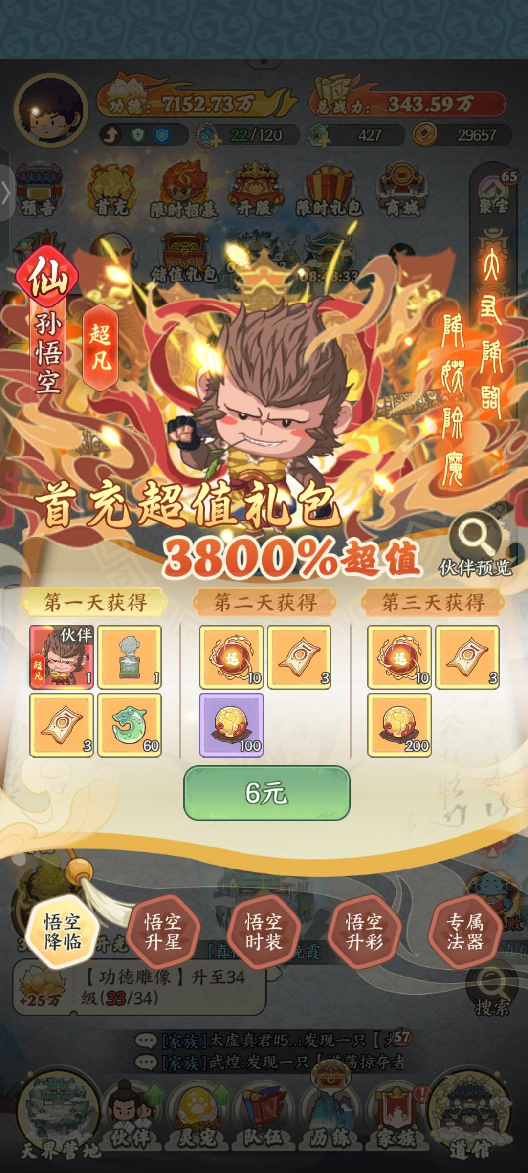 刚开始挺喜欢,玩了几天,给新人的告诫,这游戏锁卡,孙悟空六元买的,买了都不解锁,抽不出来,想升级继续买,刚开始是仙级,18⭐买了128的礼包给的紧箍咒道具才能升神级!别的神级也是需要活动,给的还是碎片,碎片不能合成出英雄!必须要本体,这个充钱💰!本来6元想养老的,现在撤了!