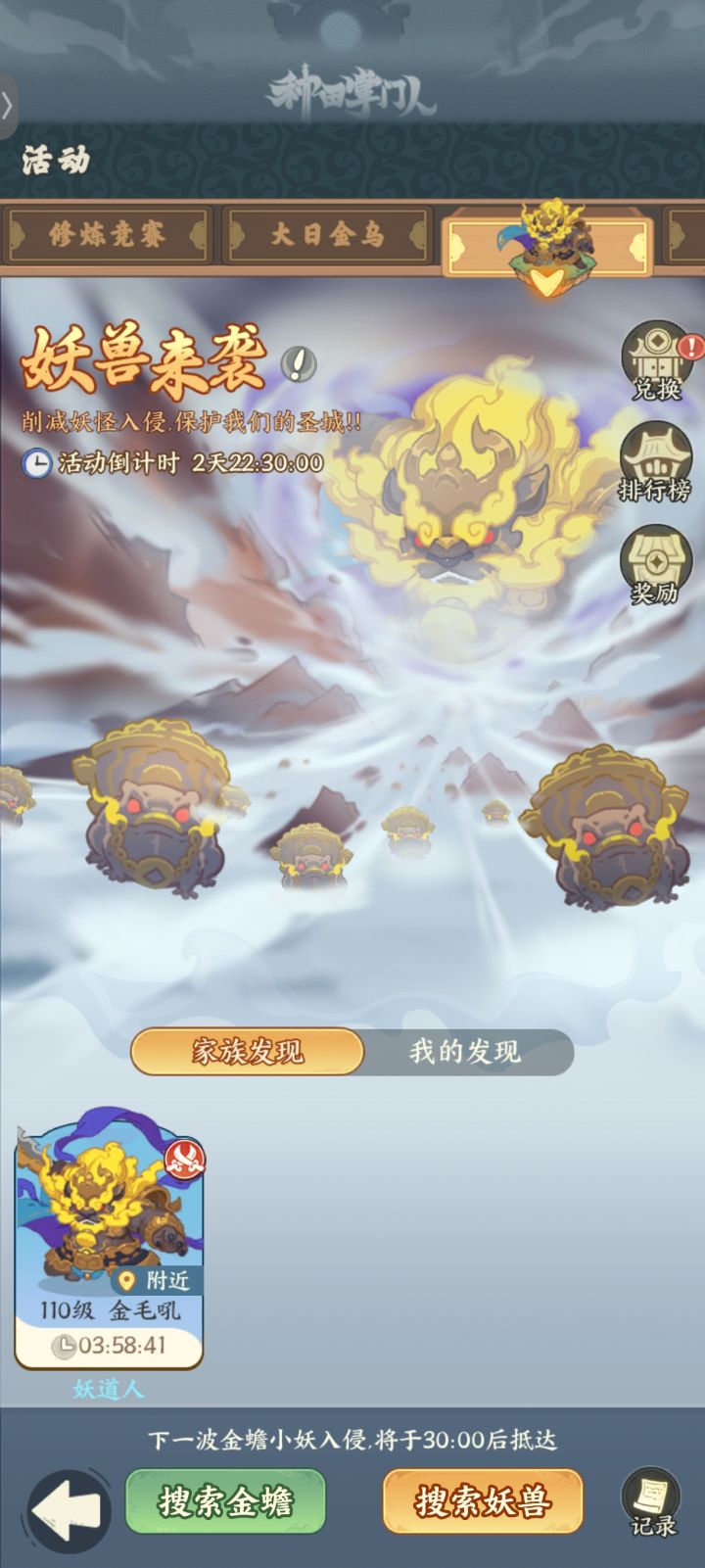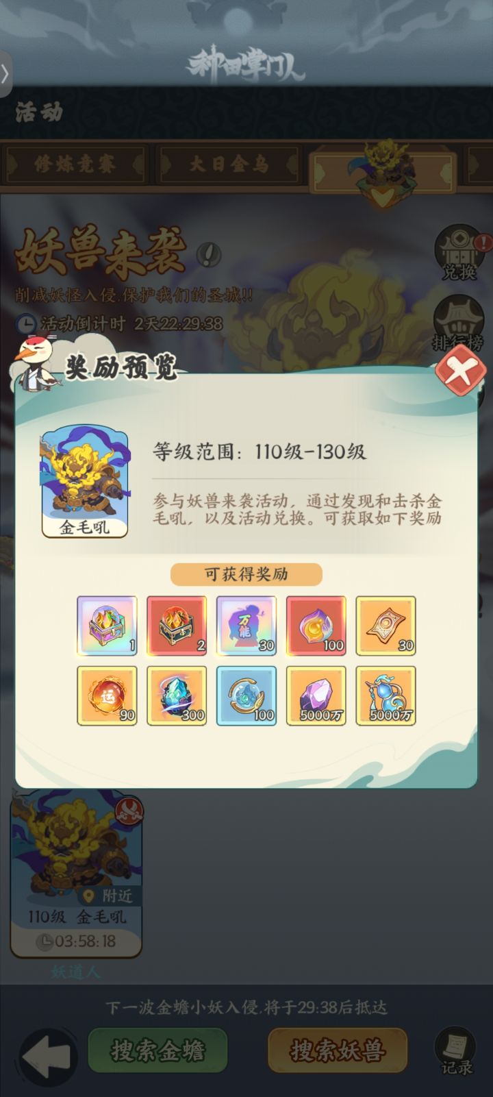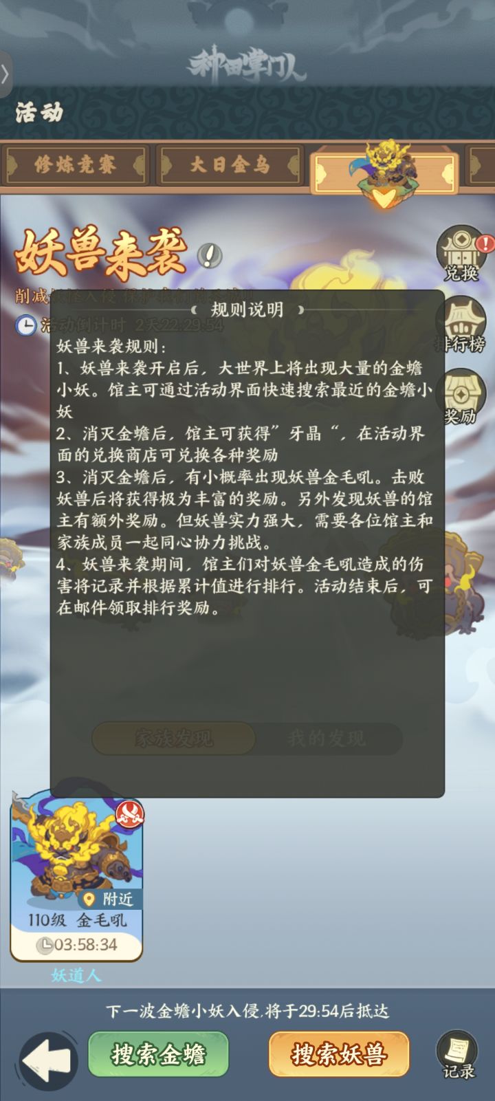 各位仙友们,大家好,很久不见了,游戏也是更新了,新玩法。感谢我们区的家族,提供帮助,给我写攻略提供了不少素材。咱们言归正传,开讲 ⭐️妖兽来袭金毛吼等级范围:110级~130级活动时间:三天(72个小时) ⭐️《妖兽来袭规则》1:活动开启后,天界出现大量的金蟾行榜小妖通过活动界面,快速搜索最近的金蟾小妖2:消灭金蟾后,可获得”牙晶“,在活动界奖励面的,兑换商店,