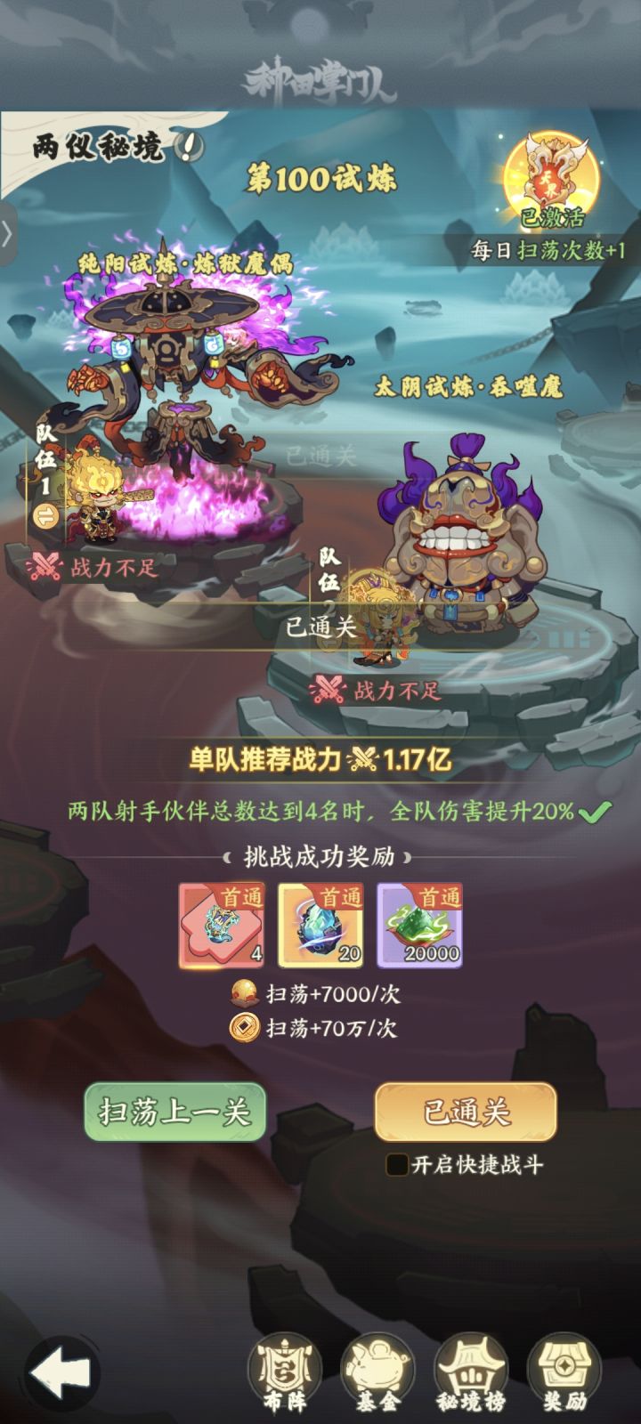 明天开服第七天要开李白,天界攻城好像第八天开。神话卡: 1,猴子神话需要冲128,放弃。 2,祝融抽到12星就停手了,留票抽下一个神话。 3,金乌白嫖每天活动慢慢升。 4,明天开李白,不知道能不能白嫖拿到。 5,后面轮换神话金灵,金蝉子,神农就留着票慢慢抽。评价: 可以消遣,首充六元玩,游戏节奏慢,也没被榜一拉开多少。目前资源缺口巨大,升级和敲装备的材料根本不够,打秘境还需要两个队