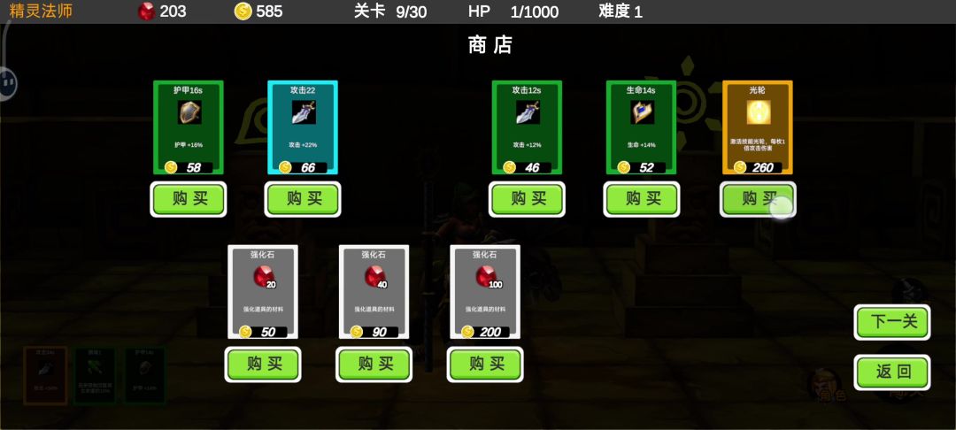1.角色主要数值成长点在于法宝2.法宝可以通关后随机3选1获得,也可以在商店里购买3.通关后可以获得一定的金币和强化石,金币可以用来在商店购买法宝和强化石,强化石可以用来强化法宝4.有的法宝能强化,有的法宝不能强化,强化法宝可以获得更高的数值5.法宝分为绿蓝黄三级品质,数值由低到高6.问号房间可能随机出金币和强化石房间,直接获得大量金币和强化石7.法宝只有装备上才能起作用,在角色面板可