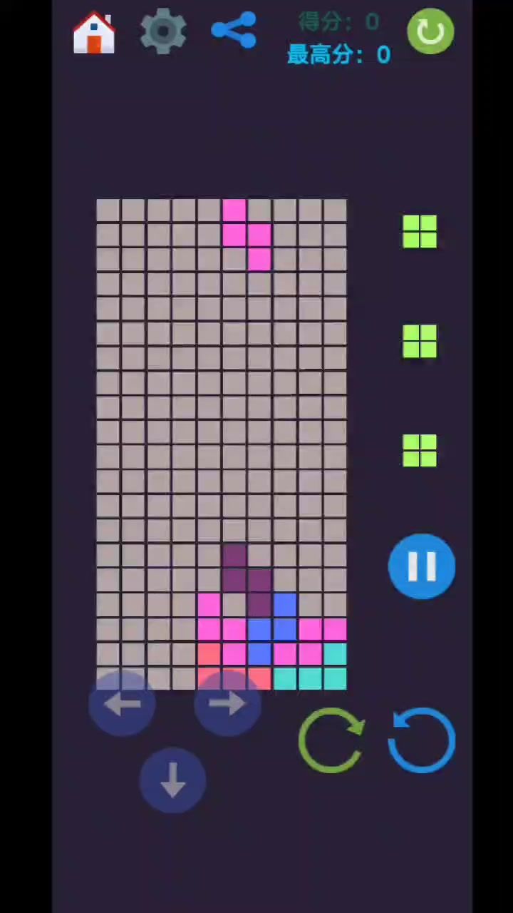 合集包第17个小游戏上线! 落落方块,经典俄罗斯*方块玩法。 同时支持按键和滑动模式。长按空白地方,可以加快方块下降速度。 欢迎体验。