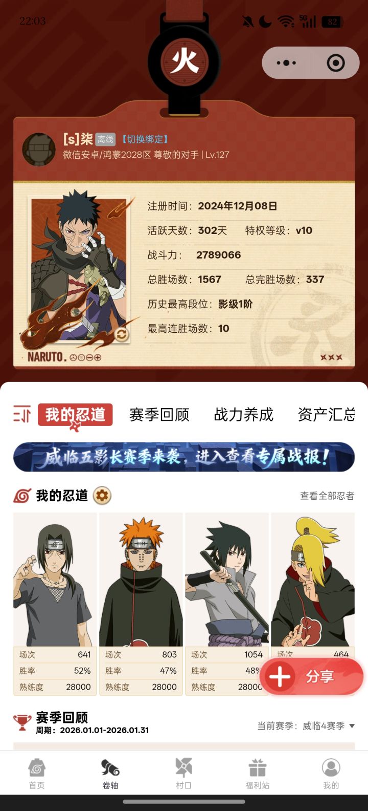 《火影忍者》手游体验服申请稿 尊敬的《火影忍者》手游官方团队: 您好!我是来自微信安卓/鸿蒙2028区“尊敬的对手”服务器的玩家 [s]六花 ,角色等级127级,现郑重申请体验服资格。 我自2024年12月8日注册至今,活跃天数达302天,总胜场数1567场,历史最高段位达到影级1阶,本赛季段位为暗部二阶。作为V10玩家,我在游戏中投入了大量时间与精力,目前拥有91名忍者、15只通灵兽