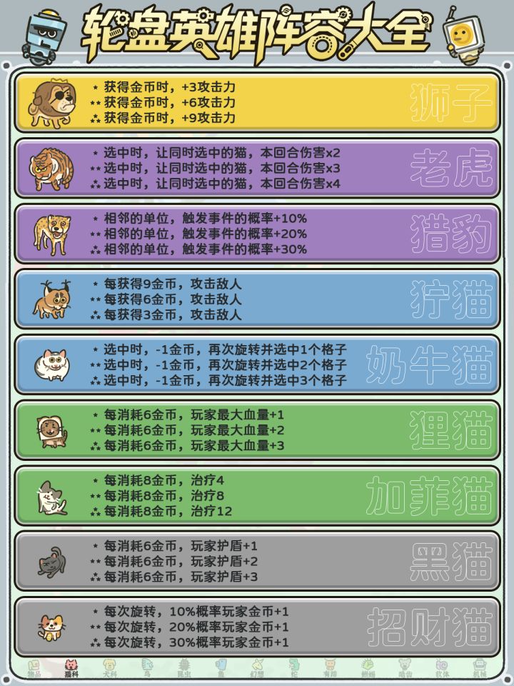 《轮盘英雄》9只猫科阵容夯拉大排行!