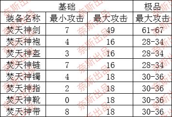 焚天是唯一不能洗练。纯靠脸的装备,可以通过怪物和黑店购买。均有概率获得极品,图片为10阶焚天极品属性数值。