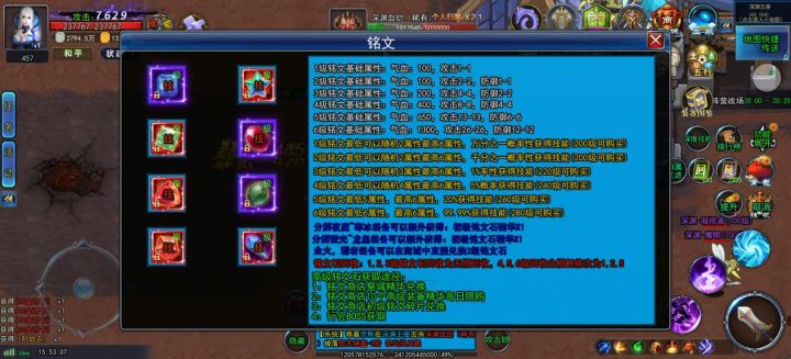 铭文200级开放3级铭文回收没有损耗,可以攒点材料。一次买多点,来回刷属性和技能,直接过渡到6级铭文,技能选择攻击属性的,每个部位技能2选1。铭文技能随机:1: (乾) 每命中目标12次后,下一次攻击必定造成双倍伤害! 生命每降低10%,玩家伤害加成增加2%2: (坤)生命每降低10%,玩家伤害减免增加3% 生命每降低10%,玩家对抗减免增加2%3: (震)每600点生命转换1点防御