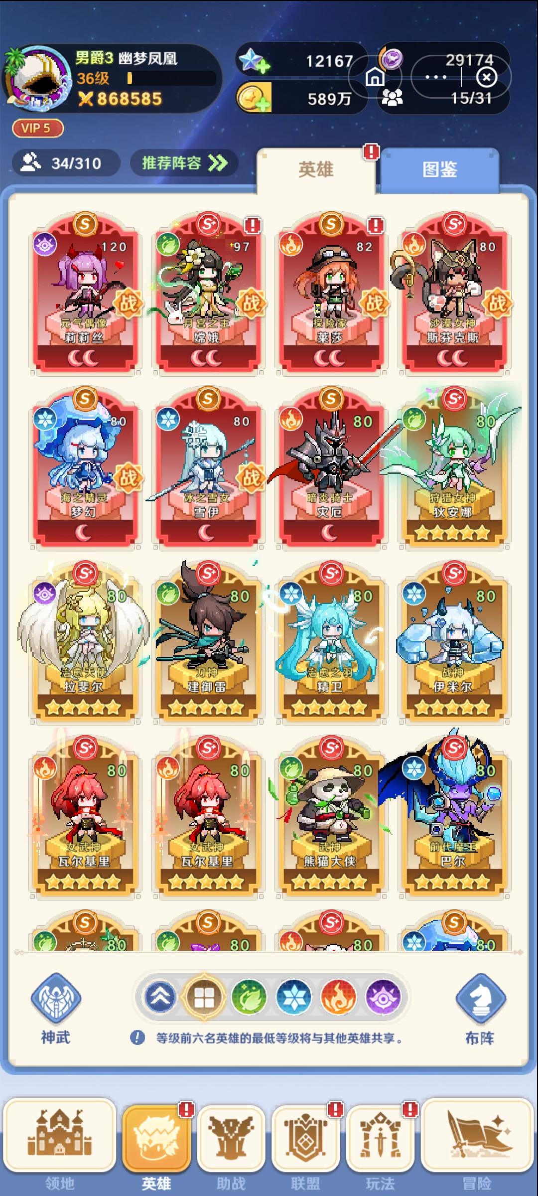 目前六月四日,虚空英雄出到卡拉,后期还出其他的会有变化。首先,游戏PVE副本少,养得好的五亿多基本全部通关了,每天上线都不知道干嘛,再不更新玩不下去了。游戏战力系统就几样,英雄升星—符文—神兽—圣器,特别是后面两种,加的战力超高。水系是个坑,特别是露娜,前期战神,秒天秒地,秒了一个,能把剩下的都砍了。但等到符文出了,盾特多特厚的时候,一技能下去就只能破盾,屁用没有,养可以,不建议主养。洛神也