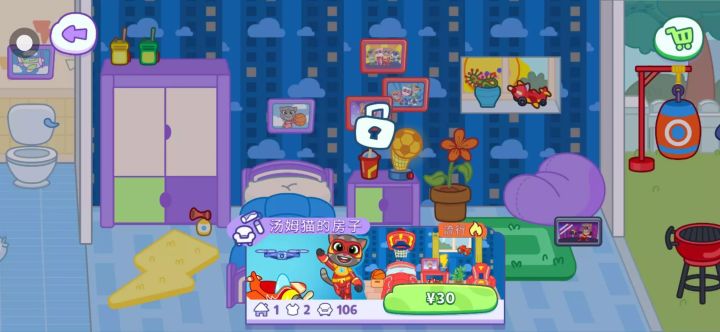 汤姆猫小镇有5个角色,有“汤姆猫,安吉拉,汉克狗,狗狗本,贝卡兔”,金杰猫需要有树屋和农场才能出现在小镇。现在汤姆猫小镇有金杰猫的农场了,可是需要花费18块钱