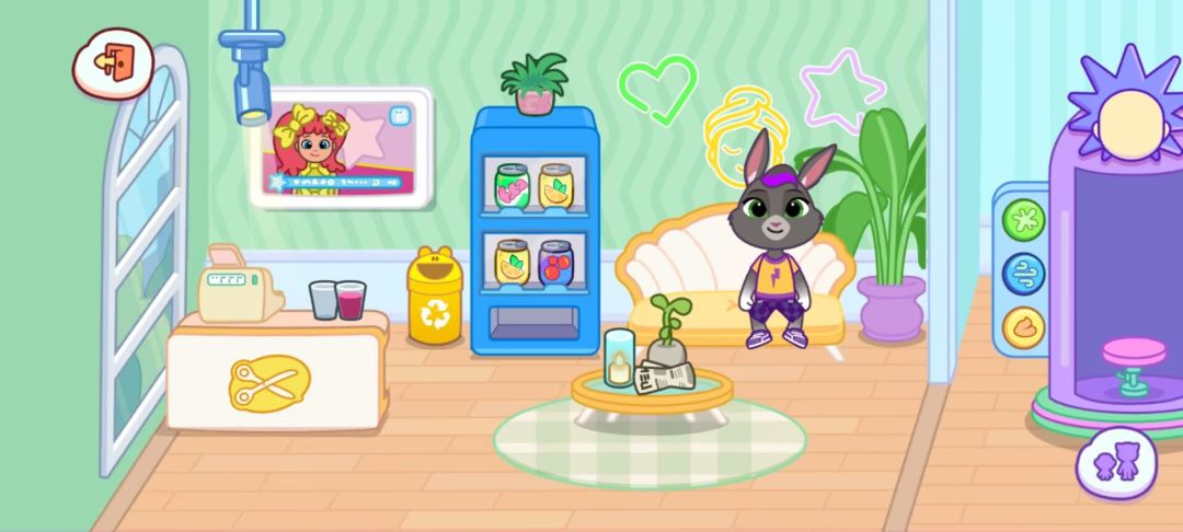 太空船场景是《汤姆猫小镇》中最具科幻感的区域,单一船舱内藏着无限宇宙探索可能,适合喜欢星际旅行的玩家。(一)零重力模式:反重力趣味体验点击 “零重力开关” 后,角色、家具、食物会漂浮在空中,滑动屏幕可推动物体旋转。尝试让角色 “抓住” 漂浮的杯子喝水,或用书本搭建 “空中城堡”,物理互动效果充满喜感。注意关闭重力后,角色行走会变成 “跳跃漂浮” 状态,需适应新的移动方式。 (二)宇宙探索界面:星际