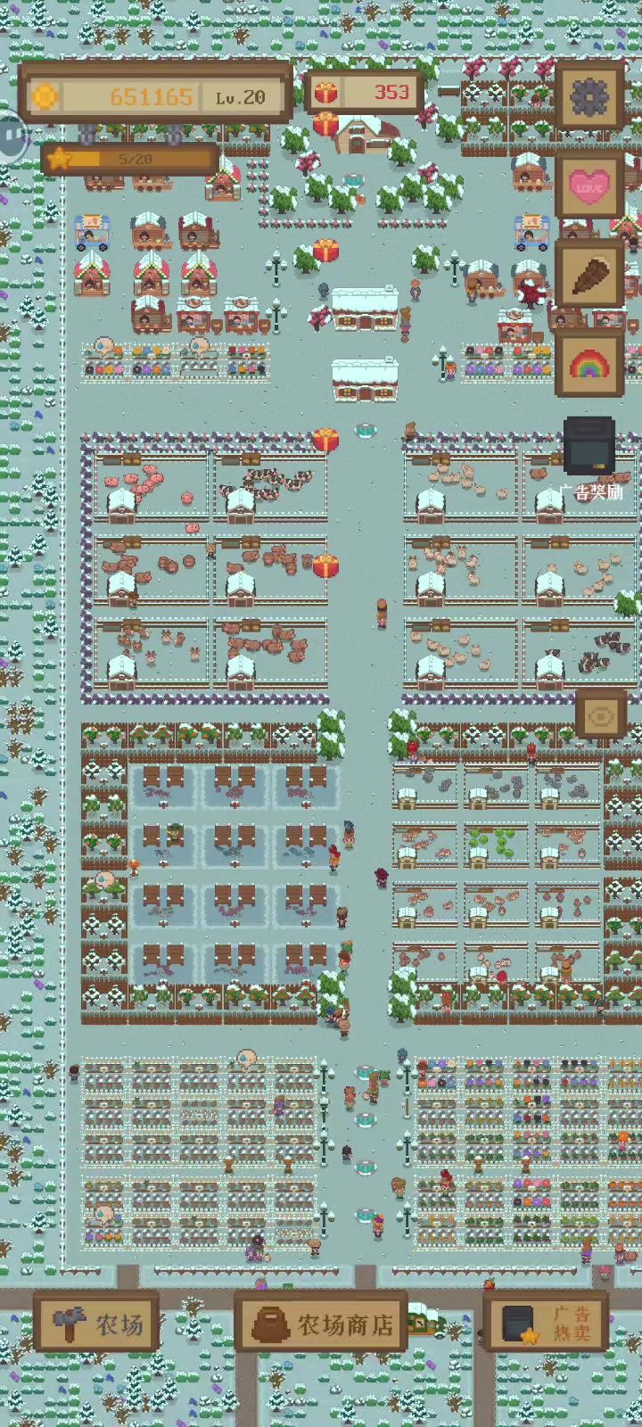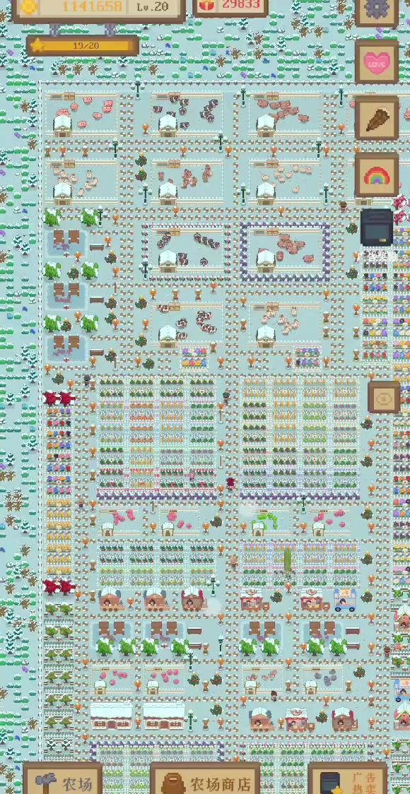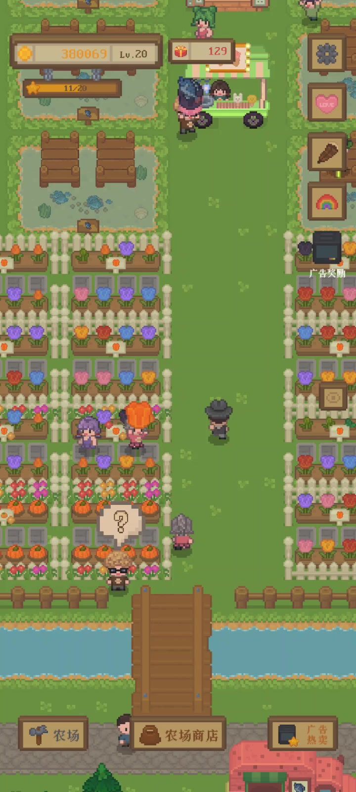 只需种两排田 (我种三排是热卖的时候会瞬间清空) (还有首先要看你顾客的钱包,比如小麦30块,你的顾客钱包只有50那他只能买一个小麦,他就得走了,所以可以改成25块的玉米,或者一会提升顾客的等级,让他的钱包有60块) 批发商重中之重,默认是收土豆的,给他刷新一下,随便刷出个贵的就行,因为批发商是双倍价钱收的,越贵越好。然后就种三排相同的批发商需要的,因为客人是没有需求的,你有啥他就会买啥,所以那些