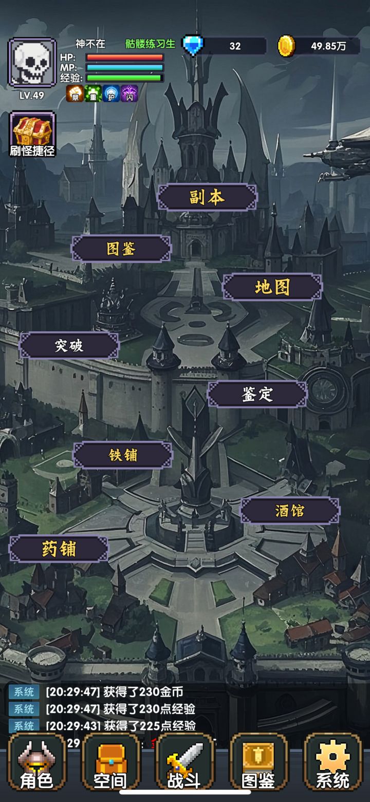 如果你想纯粹的挂机,不动脑子,不在乎世间纷纷扰扰,悠然自得的角色。那么恭喜你,废物骷髅来了!没有技能!没有技能!没有技能!属性翻倍!属性翻倍!属性翻倍!我的话说完了,快去下载!兑换码发一下吧:今天赤膊挡相挡