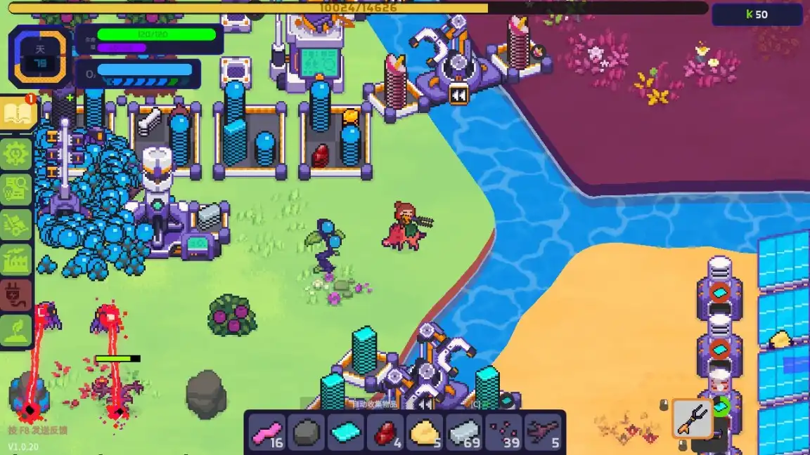 虽然这对喜欢自行研究自动化工厂建造的大佬而言也许会损失一定乐趣,但对于诸如笔者这样打打杀杀习惯,玩游戏时思考力不足的玩家而言,简易上手的自动化工厂建造体系显然能提供给我坚持把《Nova Lands》玩下去的动力。