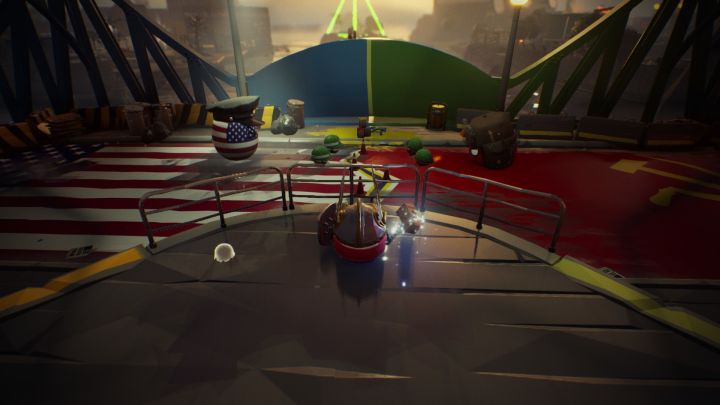 在第一个世界,玩家需要救出18个笼子中的英国球,破坏维京球的三艘舰队并最终打败奥丁神。而尽管多样化的敌人可以举着带刺的盾牌冲刺、召唤手下、投放炸弹以及360度回旋劈砍,玩家所能释放出的攻击也只有撞击冲刺和跳跃。