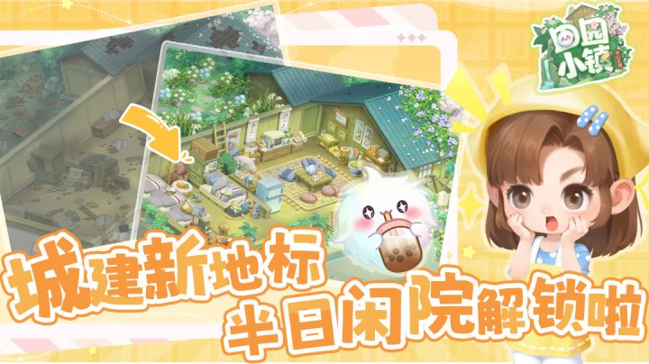 亲爱的小镇主们,逃离喧嚣,在田园间拥有一座漂亮又温馨的小家,是不是你们藏在心底的小期待?今日份田园惊喜送达——全新功能建筑「半日闲院」将在2月12日新年版本正式上线啦!为你的小镇增添一抹灵动生机,更能解锁专属小家的经营乐趣,让你的田园生活更有温度~ 半日闲院解锁指南!无需复杂解锁任务,只要小镇主们的等级达到21级,即可自动解锁该建筑!解锁后,前往【建造】-【功能】栏目,找到「