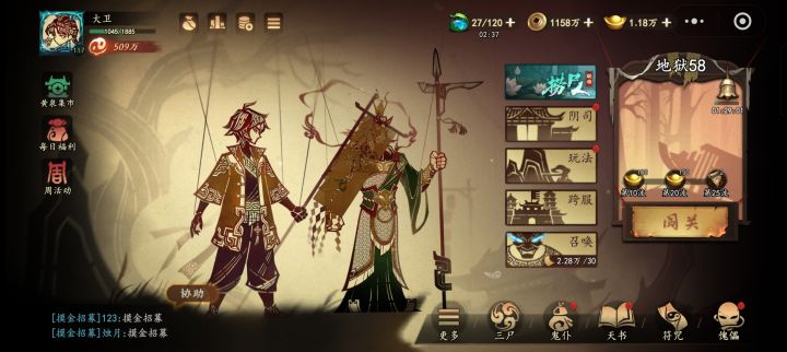 名薄 : 顺带一提,我在活动里氪了200多加上68的永久卡,预算没有这么多的当成养成玩玩得了,不要去冲榜,如果可以的话加进前五的阴司,能减少肝度和氪度,顶级阴司的凡众甚至能比低级的阎王能拿的资源更多,我是从第十的阎王转到前三的凡众的,除非是自己硬实力过硬在跨服的那个活动里能拿到好的奖励,那在低级阴司当阎王还说得过去,不过战力建议在100w左右,不然打不动跨服活动的高级怪