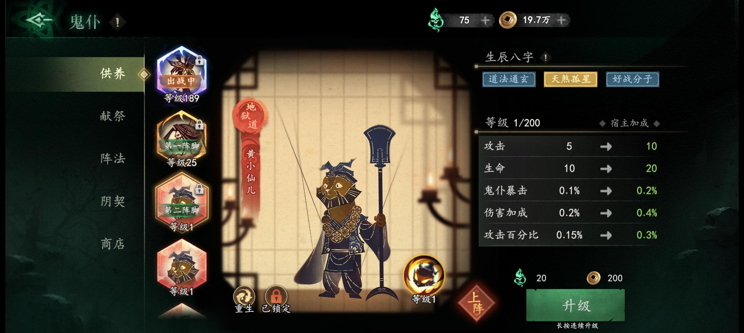魔童和罗刹选哪个一直用?黄小仙留哪个做阵脚?还有十来个黄小仙,黄色八字的暴击爆伤和鬼仆暴击爆伤做阵脚有加成吗?