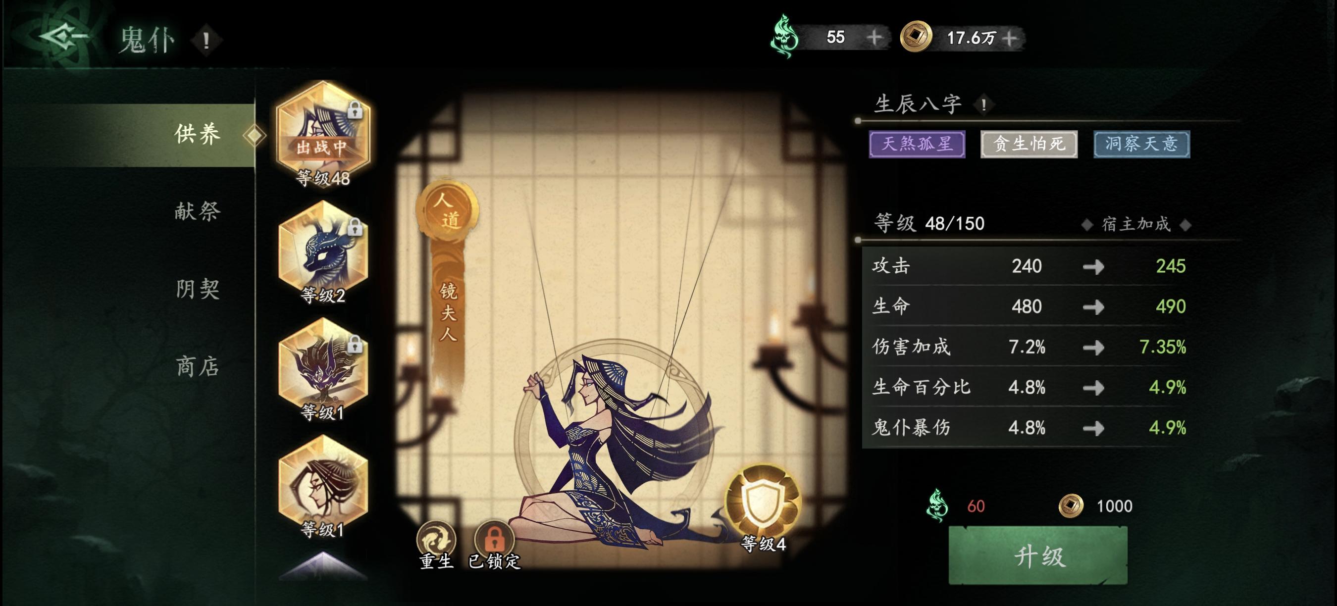 4本自选,是选琵琶6,还是攒冰女,风煞3,推到地狱6,风点数够可以继续推下去,就看风煞能不能出来,琵琶只要3点符能感觉很不错,冰女到6控6秒感觉也很好,业火有些不想用了,离开6太远,据说后面作用也不大