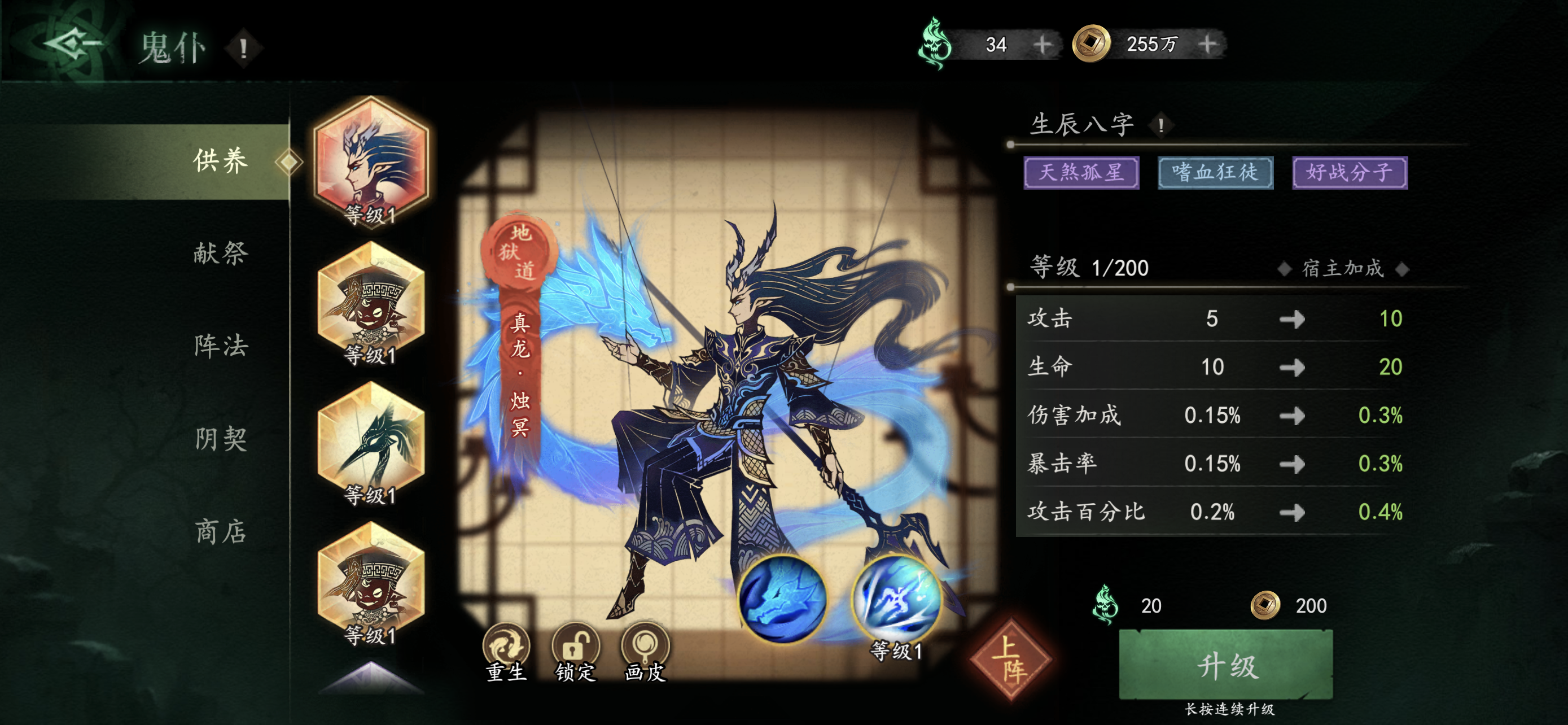攒了两千多墨水,看290升级,50%成功率,想着290*7=2030,能升七次,怎么都能上,我曹啊,七连败?
