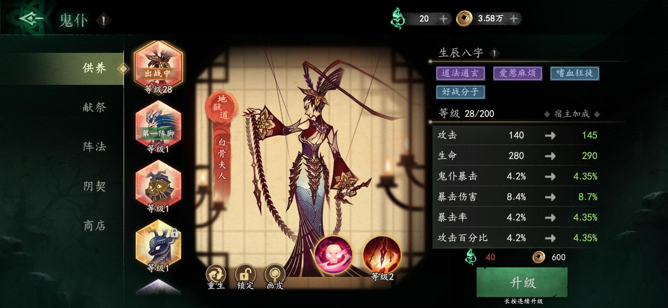 魔童和罗刹选哪个一直用?黄小仙留哪个做阵脚?还有十来个黄小仙,黄色八字的暴击爆伤和鬼仆暴击爆伤做阵脚有加成吗?