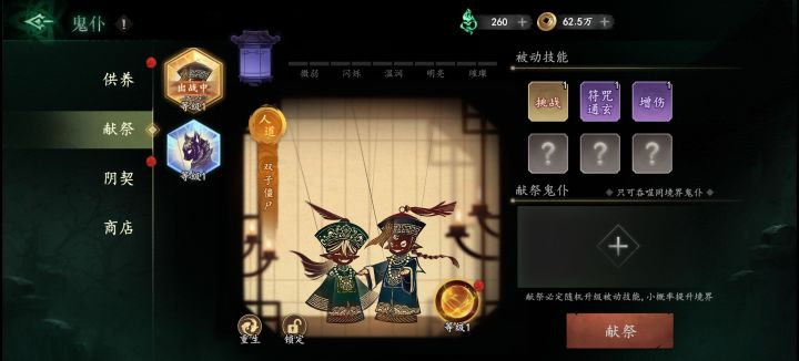 我是小氪玩家,但是运气很差,只抽到过两三次齐射,只有48万战力,大神们帮我看看这个号是不是废了1、目前卡在了29关,就是很多提灯人处理不掉2、花了68买了一个自选鬼仆,最后开出来这个双子,能培养吗?可以的话怎么培养?3、今天开服第三天,存了2万元宝,我只知道存钱不知道用在哪里,也请各位指点一下~感谢各位不令赐教