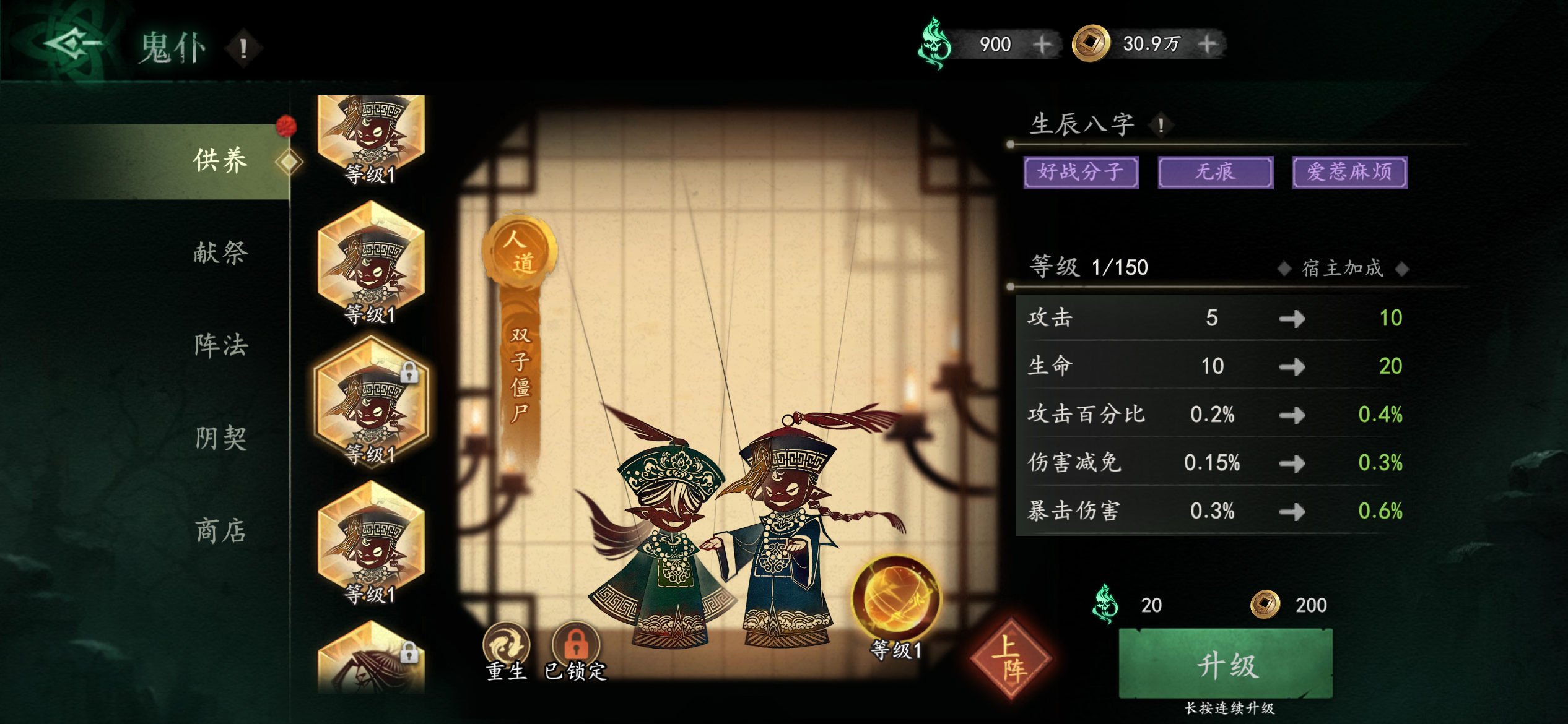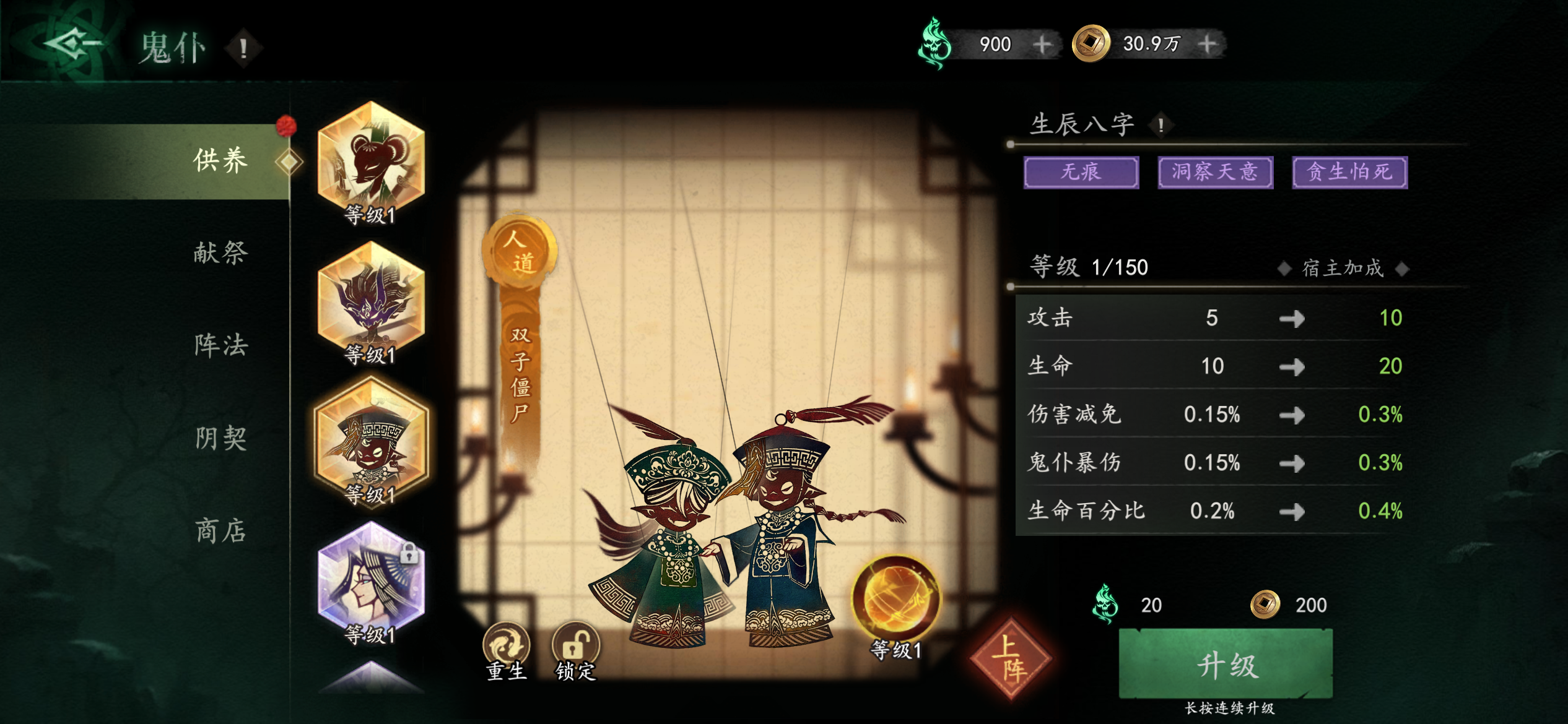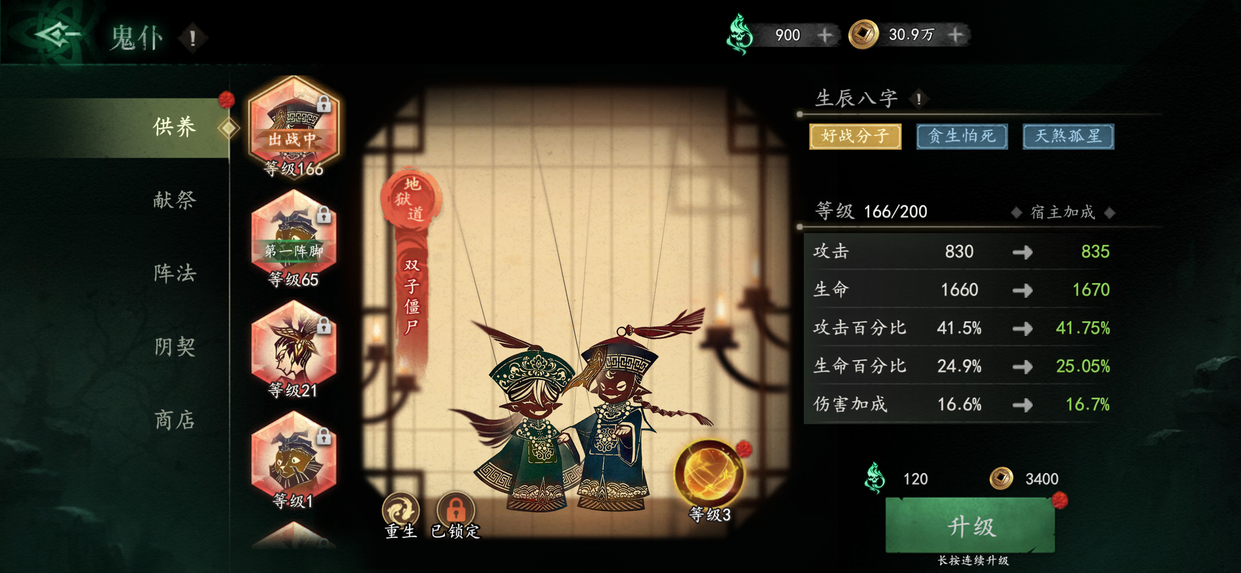 我是小氪玩家,但是运气很差,只抽到过两三次齐射,只有48万战力,大神们帮我看看这个号是不是废了1、目前卡在了29关,就是很多提灯人处理不掉2、花了68买了一个自选鬼仆,最后开出来这个双子,能培养吗?可以的话怎么培养?3、今天开服第三天,存了2万元宝,我只知道存钱不知道用在哪里,也请各位指点一下~感谢各位不令赐教