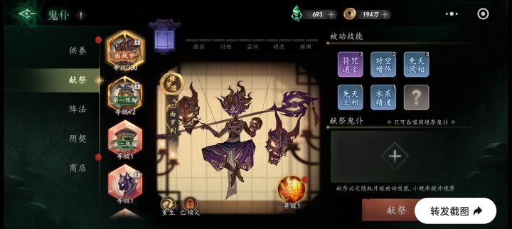 如果把献祭过的鬼扑献祭给别的鬼仆那个被献祭鬼仆会继承献祭等级吗?
