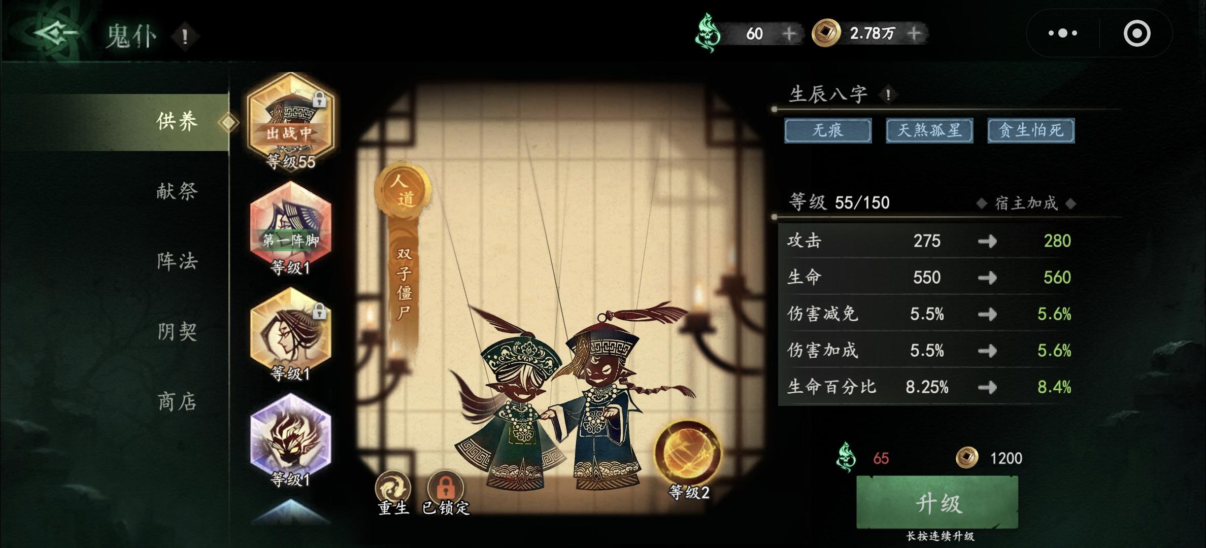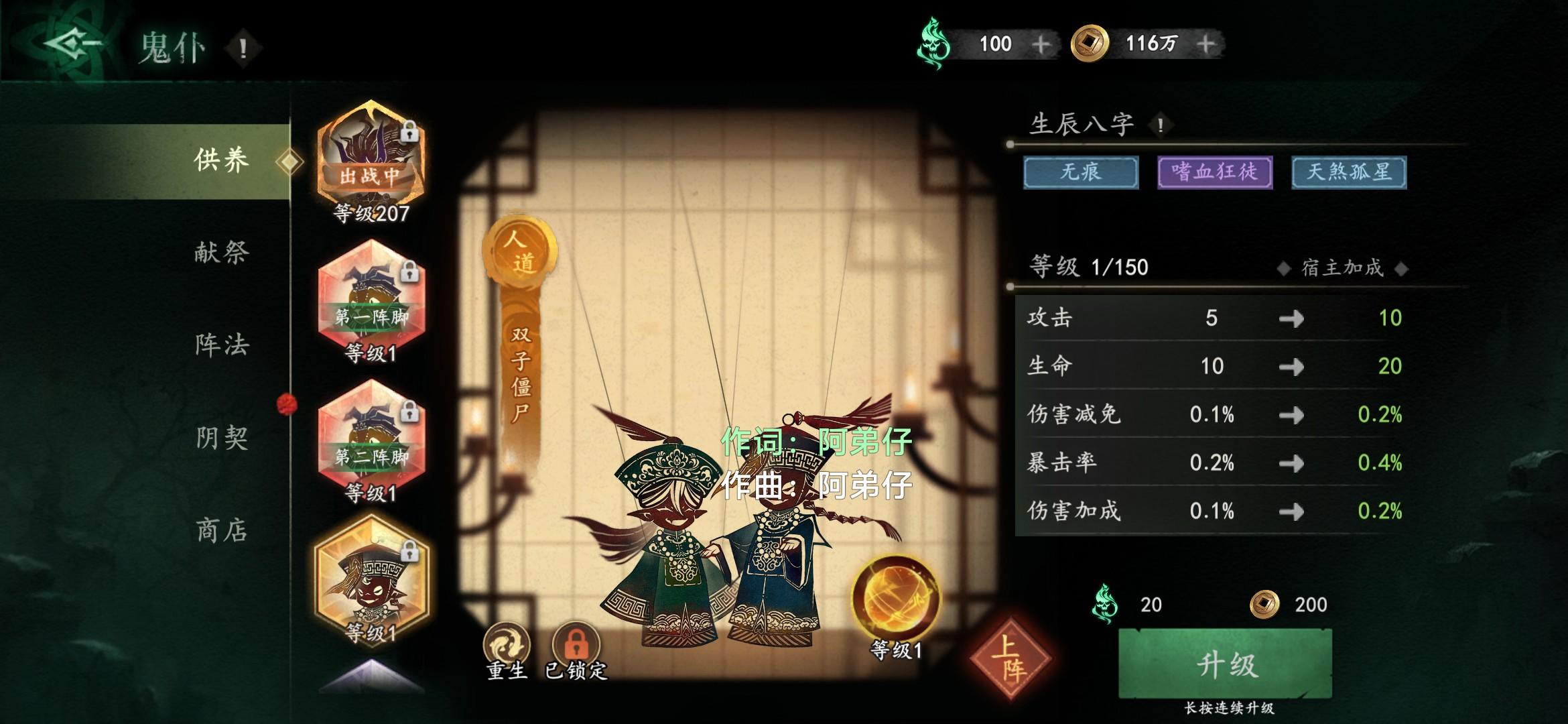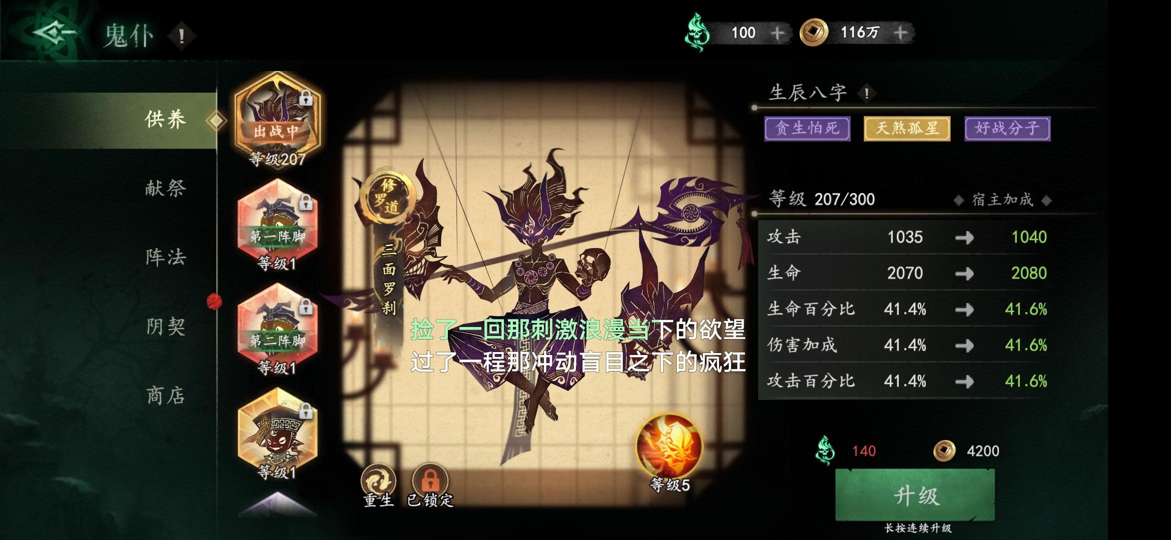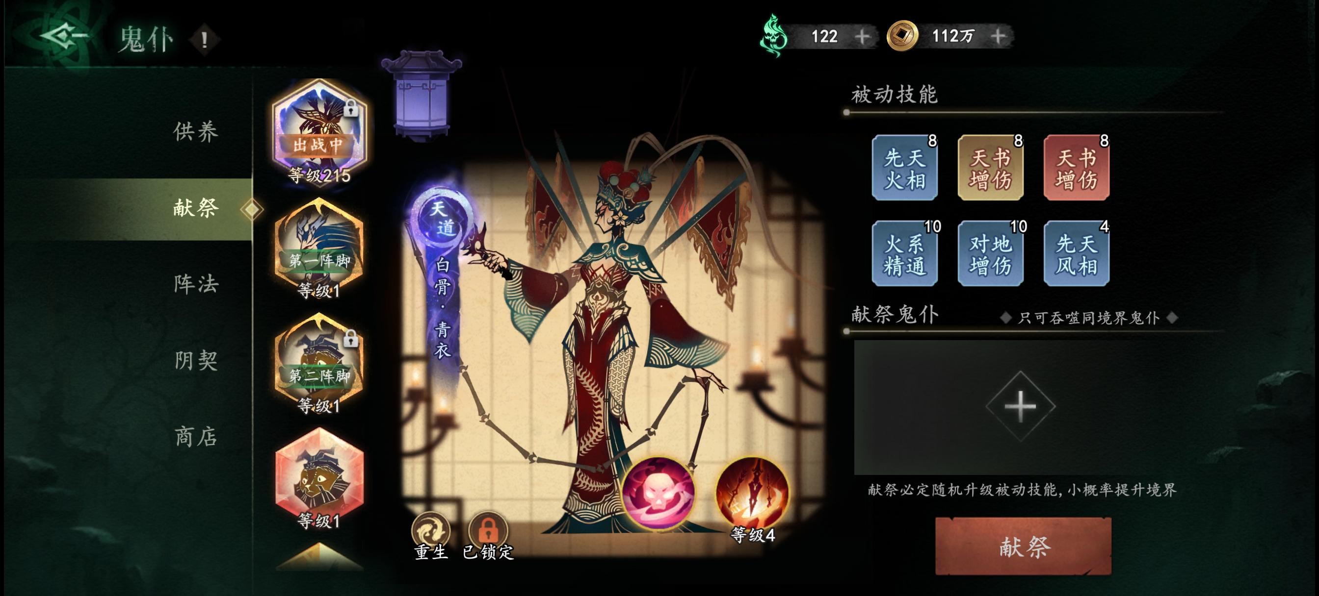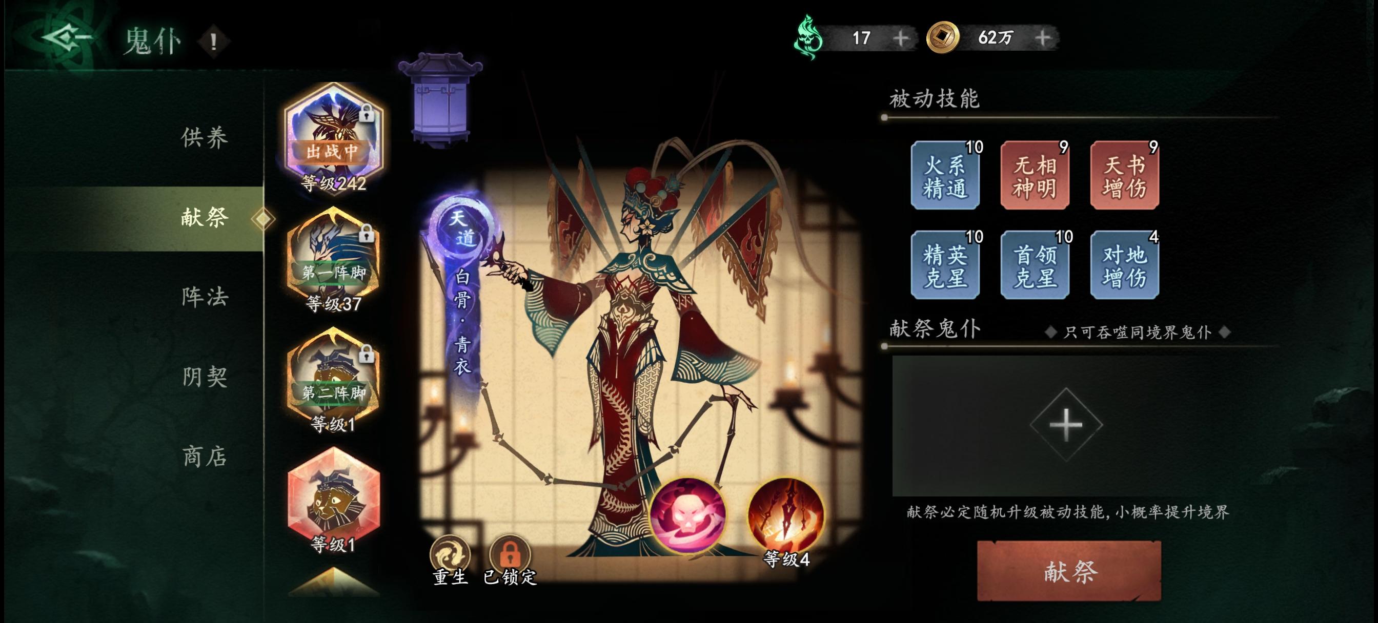 主力鬼仆白骨被动给我洗废了,有24个棺材木,心血来潮洗出来无相神明,占了黄天书的位置,一下点了确认,哭都来不及