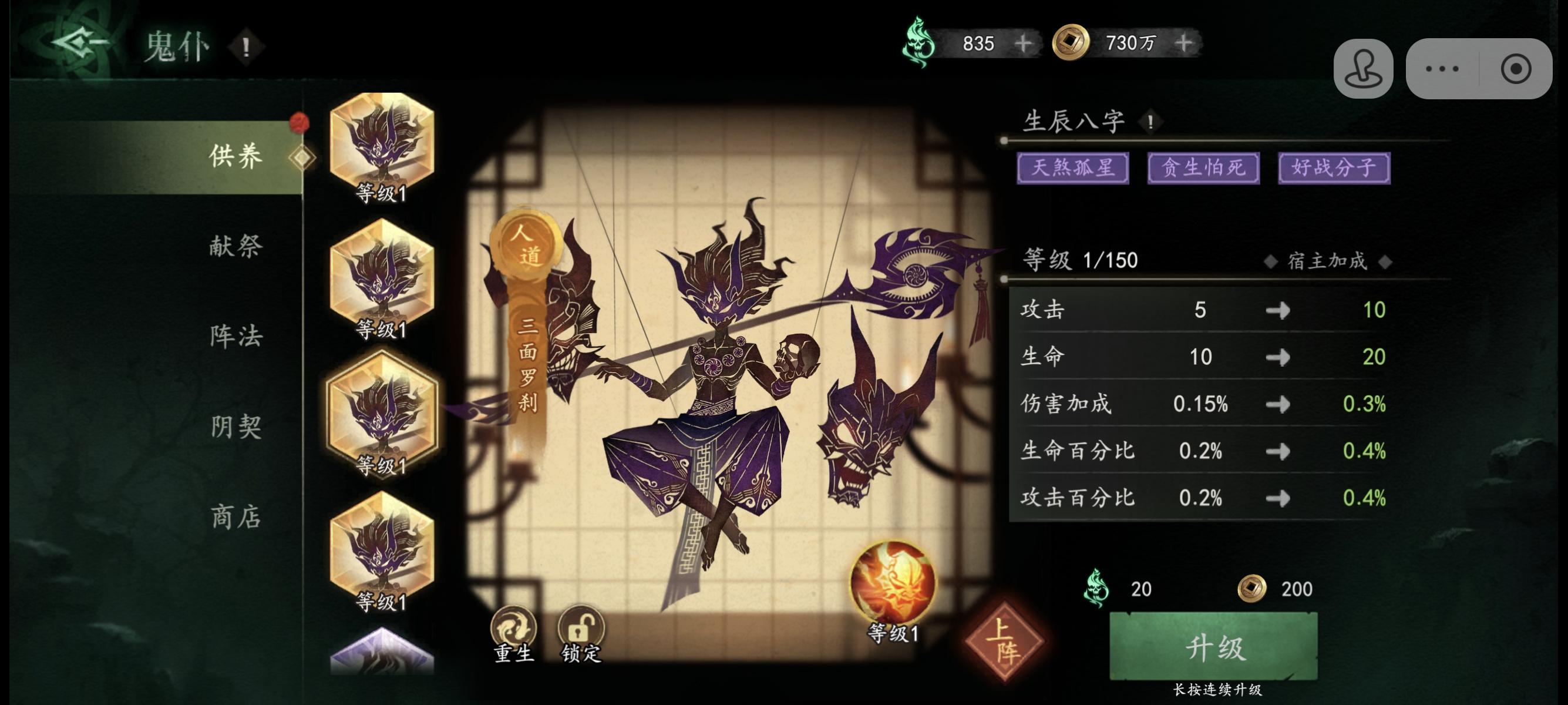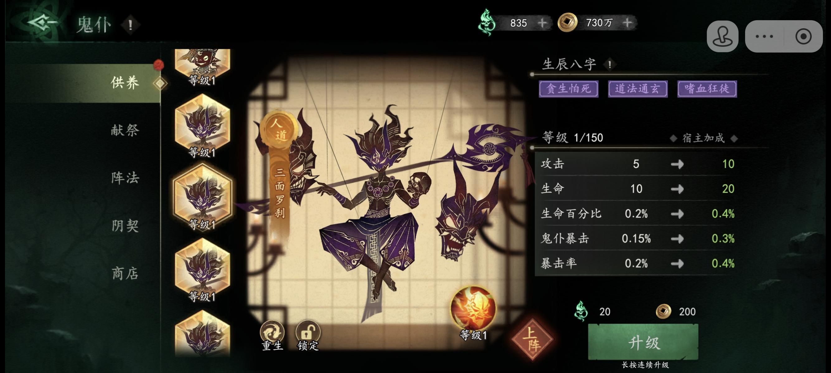 萌新第一次玩,目前15天,战力150万,进度地狱1,翻了一点攻略之后入坑,感觉这里攻略都有点未来视,推荐的都是后期顶配我是68+18+30的三卡玩家,说一下自己开荒的踩坑心得,不是保姆级攻略,完全没接触过的不宜观看1.五帝钱有红选红,金色里面最重要是初始符和天师令,这俩玩意上限等级低,很快就满了,除此以外最重要的是强运>贪财>伤害减免>伤害增加,剩下的看自己心情选吧,反正鬼仆的