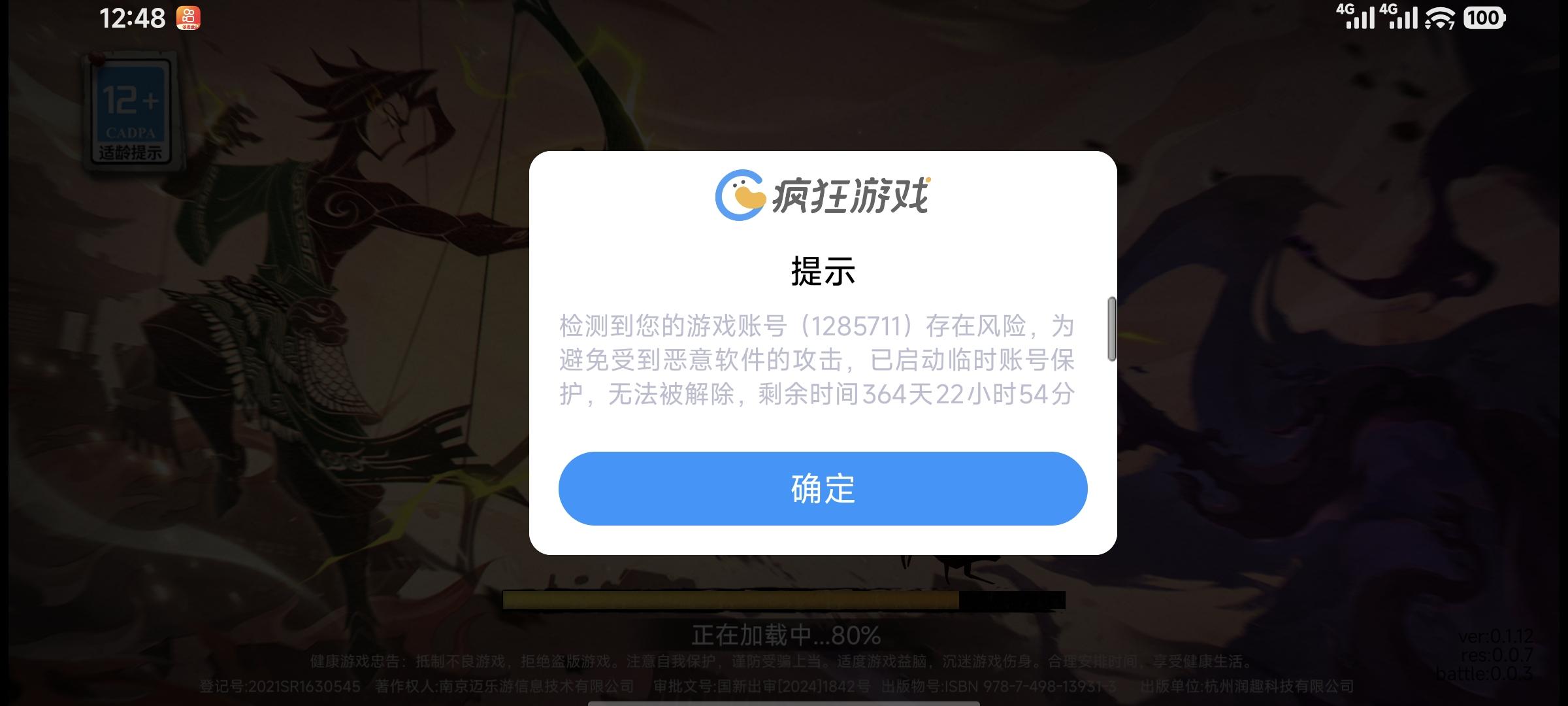把这个号登在我的另一个手机上的时候显示root环境异常,然后就自动退了,我就没有管,然后12点一过,我就想着去过一下日常,结果再登的时候显示就是这个截图了