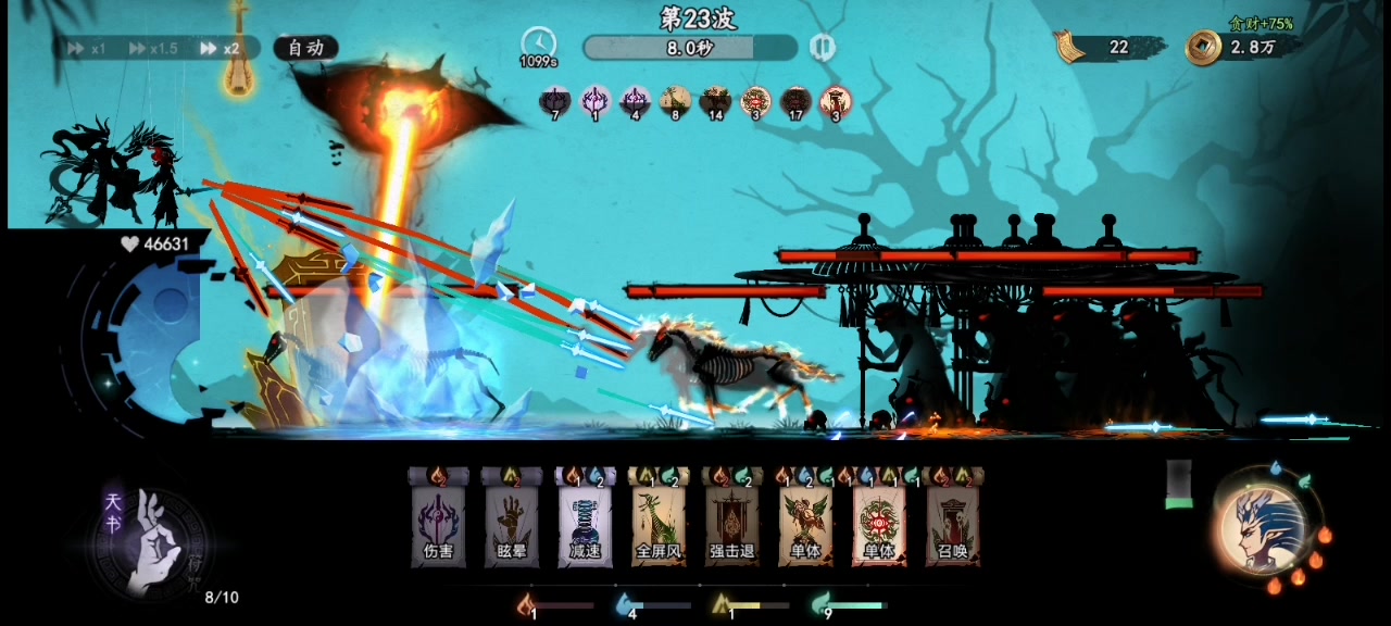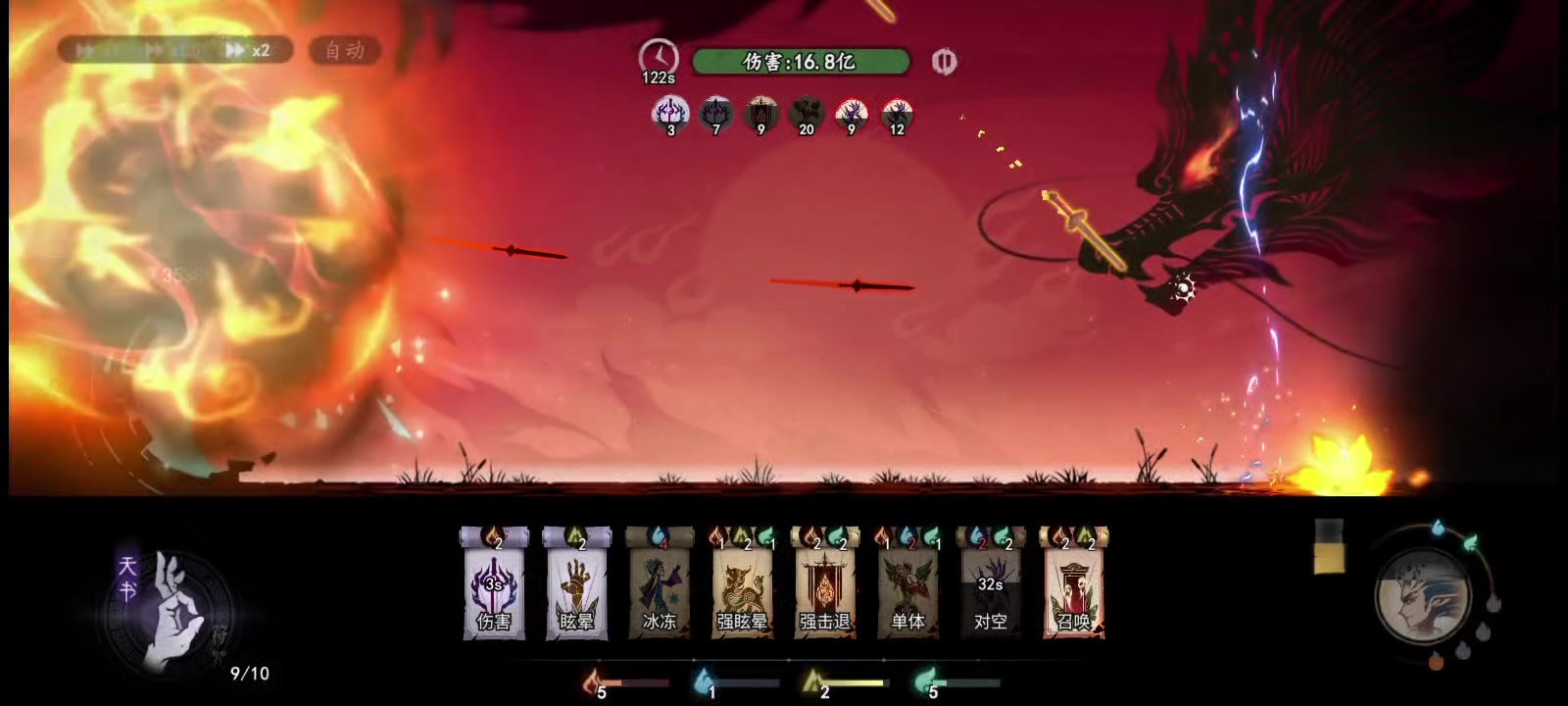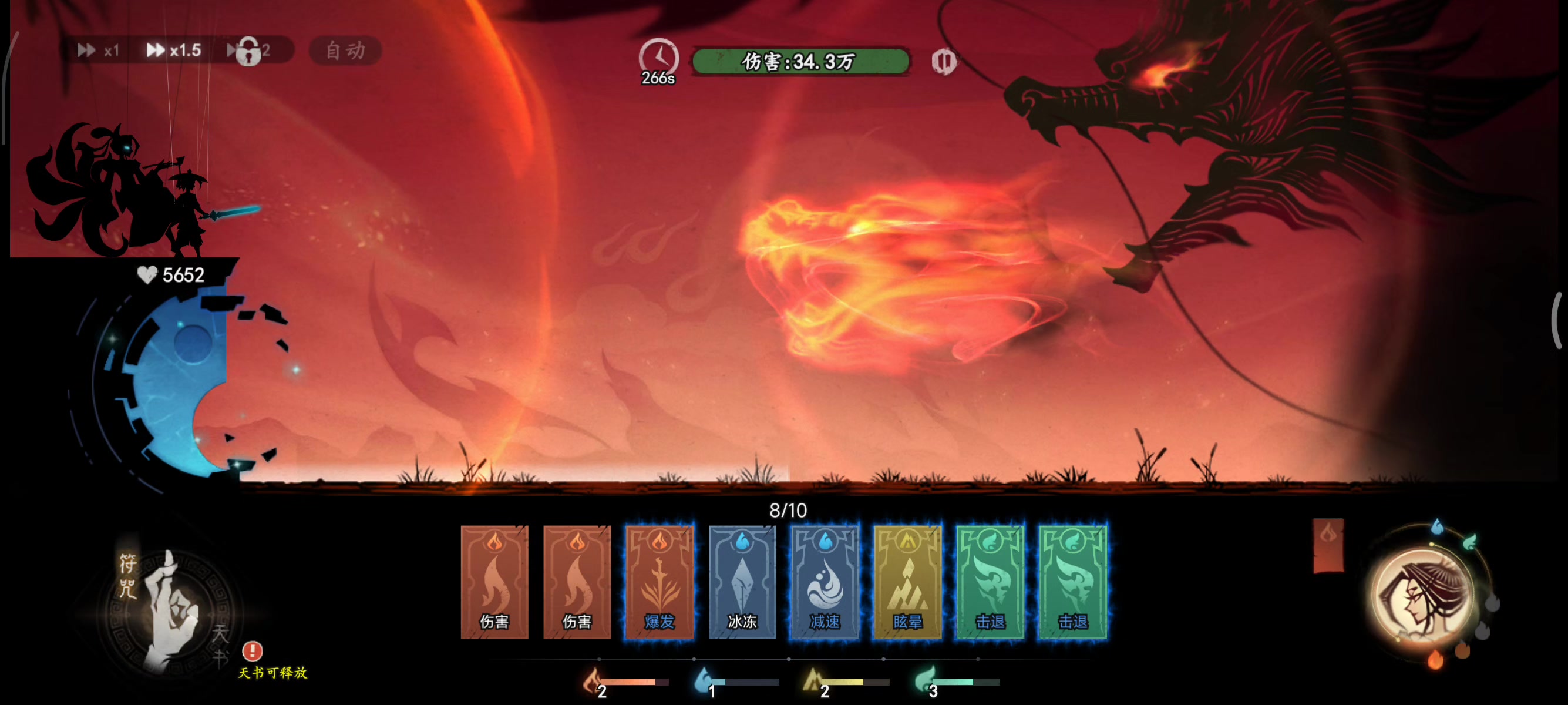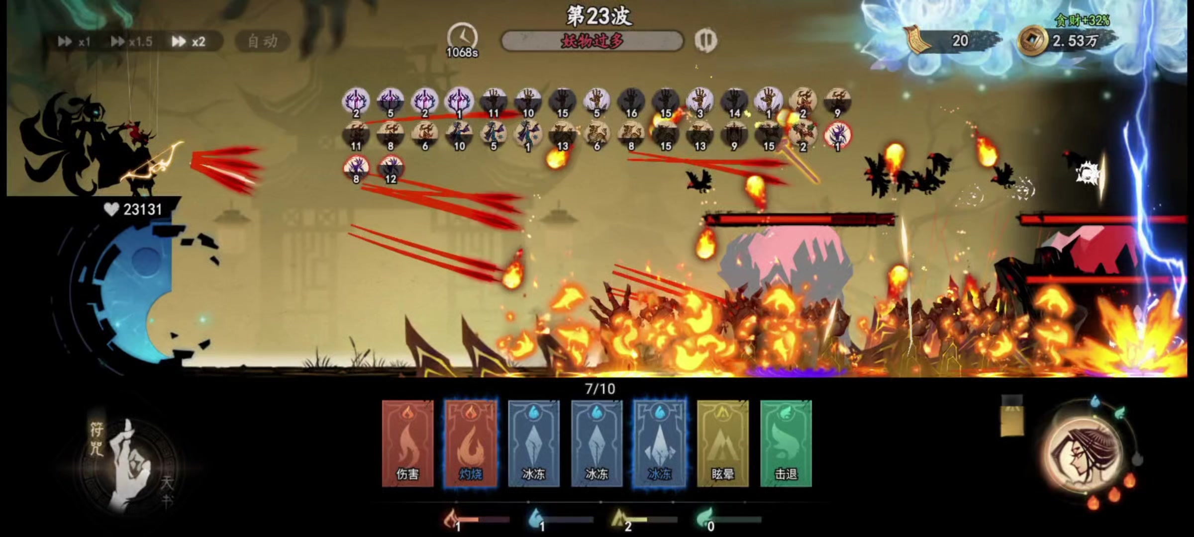 符咒已经用了伤害最高的配置,要是有一阶紫金翎就能过。新版本石头人伤害降低,用弓兵挡了几个,剩下硬吃都可以。