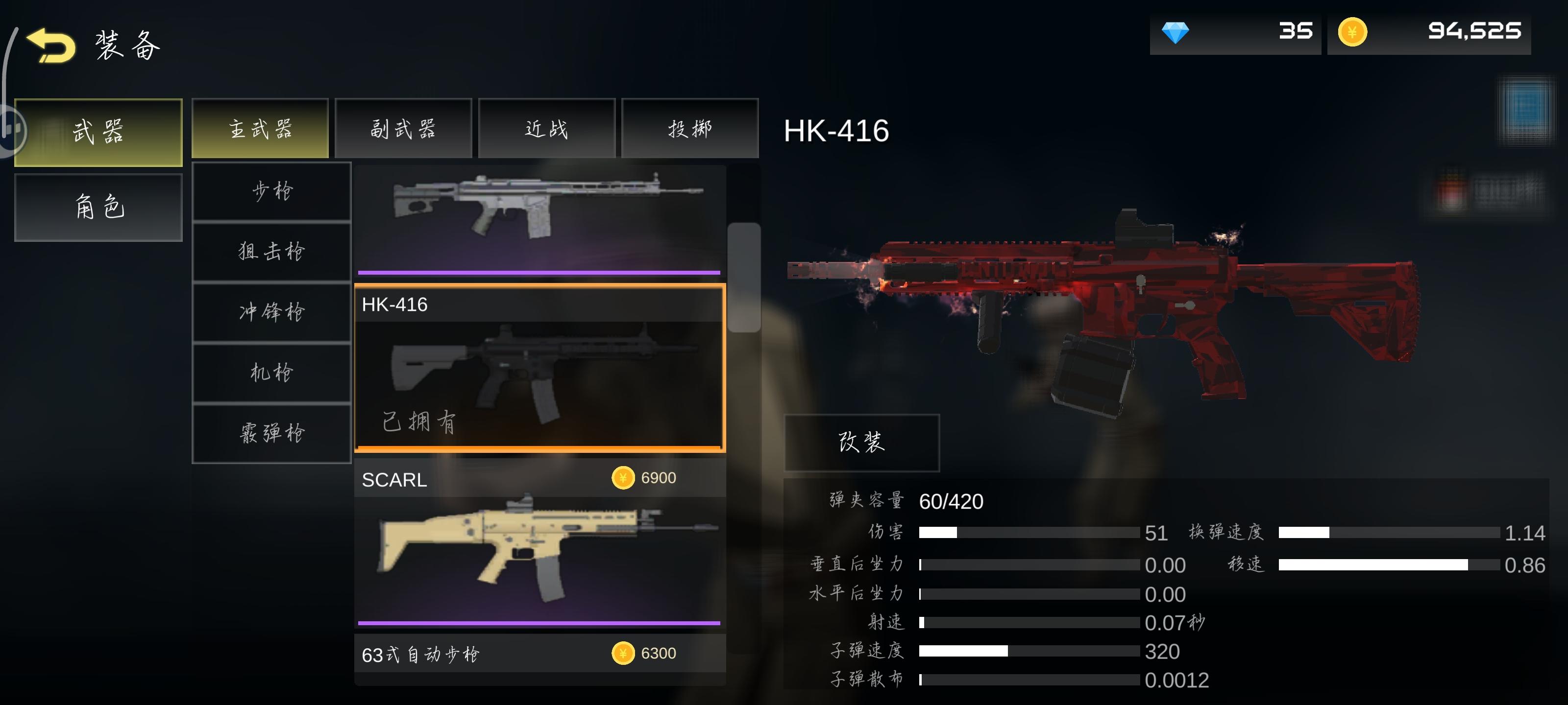其次就是步枪HK-416(P3) 这把枪作为步枪里面最贵的枪(裸枪9000)性能没的说(满配的情况下子弹散步居然为0 ⚠️散步为0的情况下好像有bug 打人不出伤害 所以不建议买消音器) 但是在伤害和载弹量以及价格方面被PRK稳压一头 这把枪有个皮肤 地狱火80钻 个人觉得地狱火系列目前是游戏里面最帅的