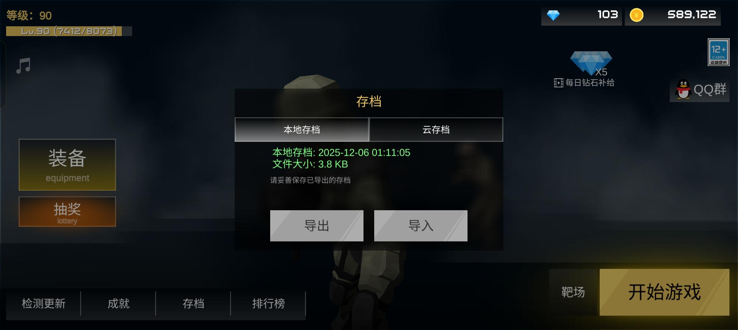 2.这是一款单机游戏,可以存档。(兄弟们,记得更新前存档一次,不然的话,有可能会造成存档丢失,导致要重新打一遍)😂