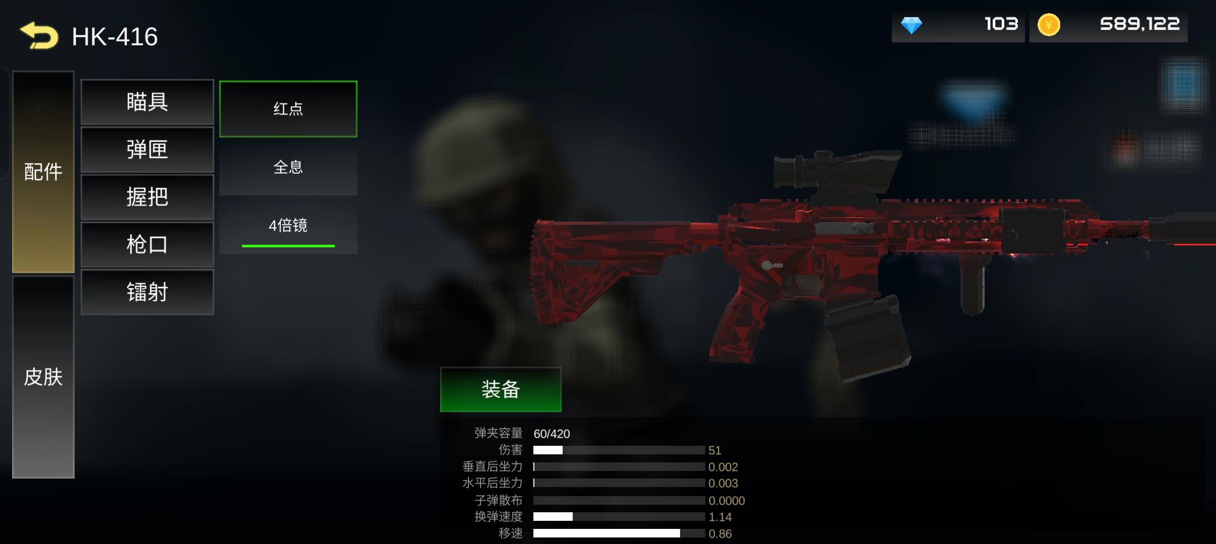 ②钻石:每日观看广告可以领30,抽奖可以概率获得,打特殊模式(僵尸、感染)结算后会给(根据分数),完成成就也可领取,刷取较慢,但掌握方法(如感染模式架等)后一次可以刷很多。可用于购买少量武器和配件、大多数皮肤、以及抽奖
