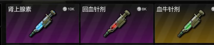 被淋湿的我回家发现了这个😊好的,让我们来看一下吧,肾上腺素,这个不知道有啥用,等上了再说,回血针剂,这个是直接把功能告诉给你😱应该和暗区的绿针差不多