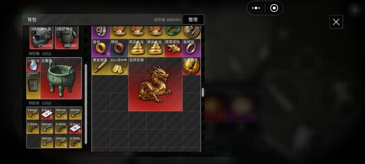 四级钥匙扣勉强够用,毕竟只有一张房卡和三把钥匙,不着急的话可以广告撤离,大不了游戏里看广,或者把撤离券塞保险箱。五级就完全够用了,后面再升级就没必要了。其实比较可惜的反而是保险箱,五级这个4*3不太够用,2*5的枪都塞不进去