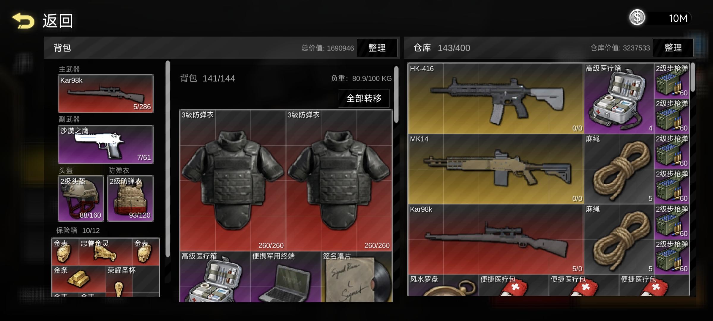 最近这几天一直在摸金,摸了不少红的贵重物品了,但这次竟然去港口里摸出两件三级甲(这东西我自己可舍不得买),还是两个装备箱一个一件,果然装备箱是要能出装备的哈哈哈。