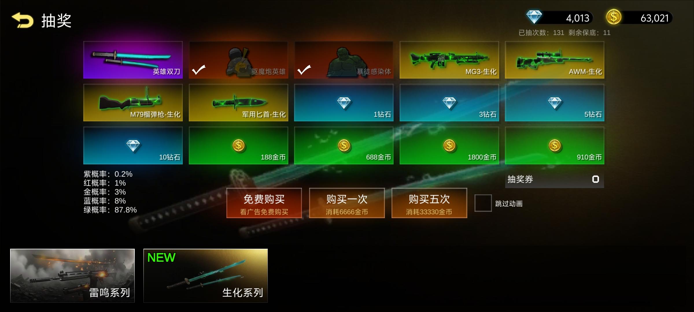 奖池除了人物以外,其他的皮肤都要重新抽