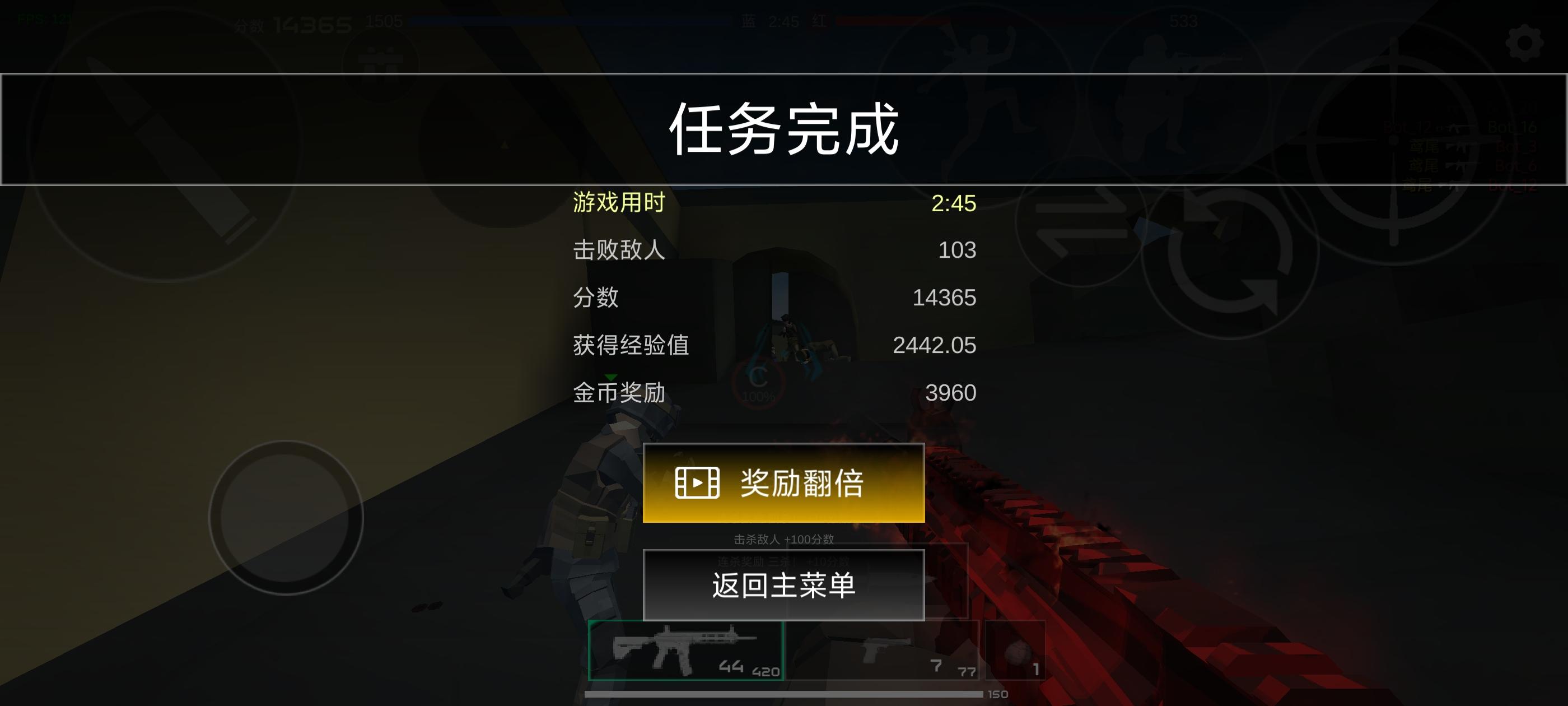 占领据点沙漠2困难人机:2分45秒103杀目前最快最强达成。3分35秒149杀目前脑测3分钟半160+可行。旧记录3分07秒111杀。根据记录比对,我觉得极限应该可以在2分45秒内打出110+的成绩。占领据点枪械:RPK-16(弹容大)>HK-416(容错高)>Colt m5(枪抖)>MK14(少10发导致比m5低)>M4A1(缺少爆头秒能力)>蜜獾(射速快导致比Scarl高)>Scar