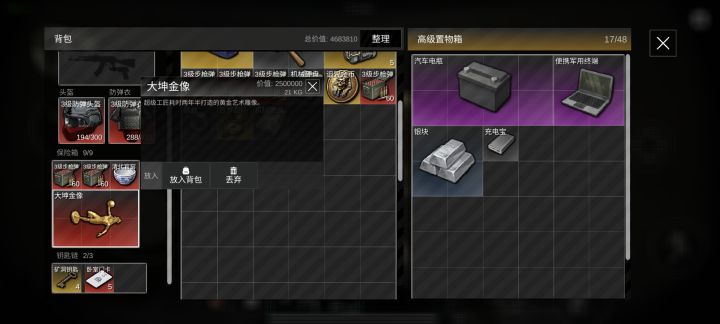 我嘞个两百五十万啊,一开始以为是二十五万就没怎么在意,结果一进背包我就走不动了,一看,21kg,两百五十万。赶紧塞保险