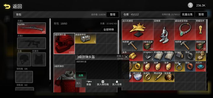 三百万那个是我没去矿洞没有仔细摸的下面的五百万四百五是我在别墅,矿洞,工业,中间那些全部搜完后的撤了情况。有时候运气好也能七八百万撤离,总得来说四个地方刷感觉不是很赚,亏得要死,我跑这三处一把狙就清完了一局基本要干掉60个人机,三级狙击蛋带四组左右基本OK了,广告撤离券提前看了进去之后用了一秒撤还是比较划算的,当然也可以跑港口撤,不过要带把步枪配上三级弹。不然时间不够撤离,最好在工业区把外面人家