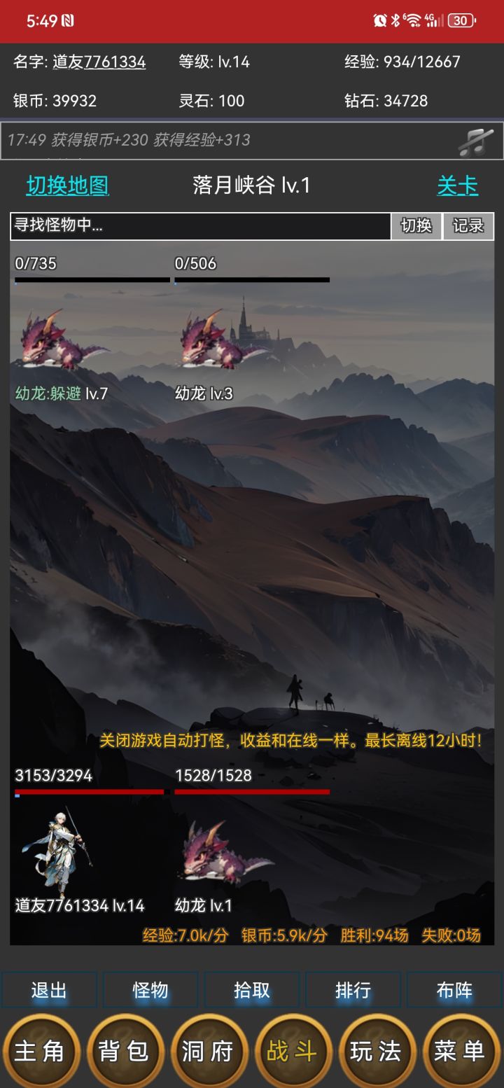 主角修仙210年。主角境界【炼气10层】。主角等级【104级】。