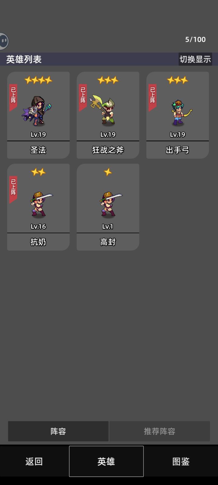 功能简单的放置类游戏,没做新手引导,看界面UI基本能理解玩法内容。战斗是全自动化的,支持多倍加速,无需手动操控,但提供了手动操作选项,有些比较困难的战斗用手动操作更好一些。