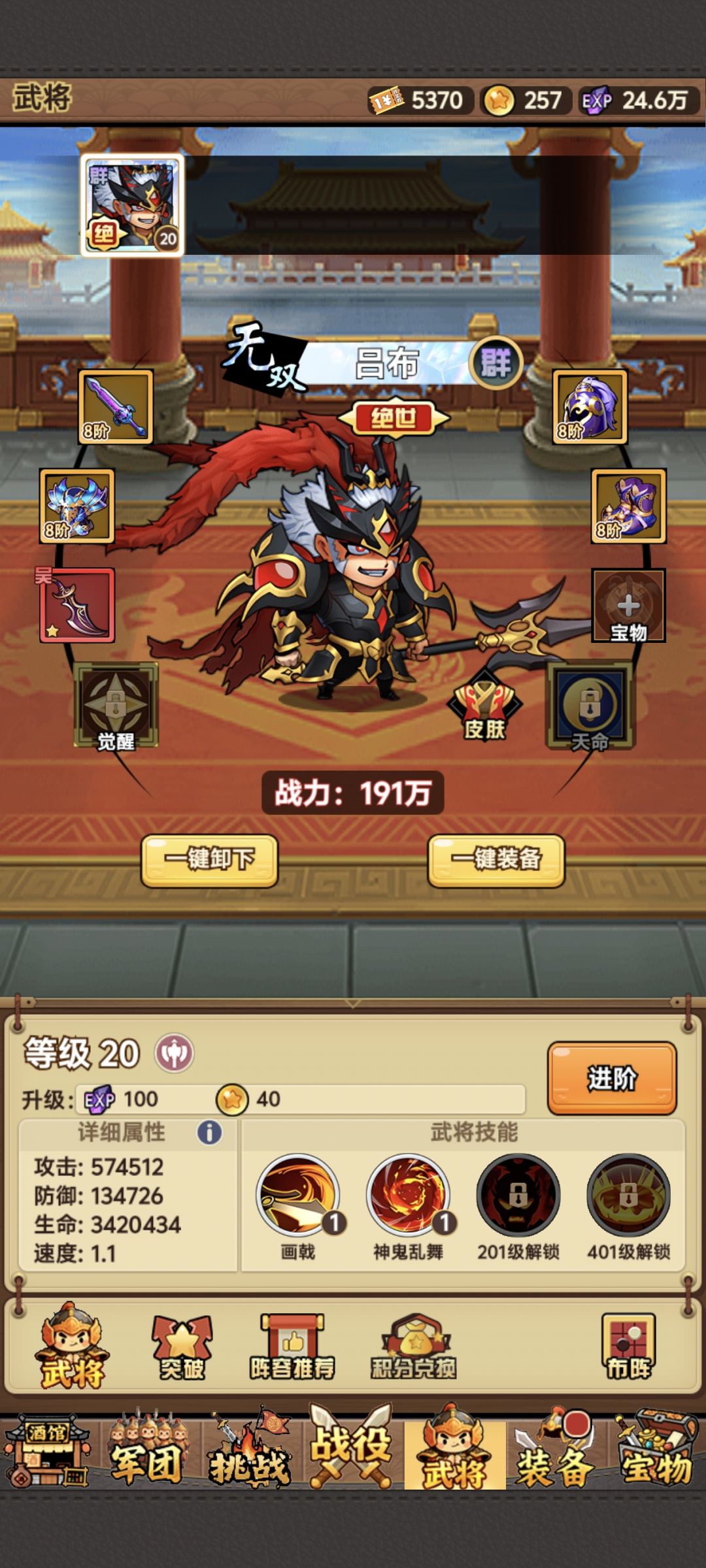 武将沿袭其他三国游戏,分四大势力,魏、蜀、吴、群 橙将分两种,一种绝世神将 每种势力有两个绝世神将 绝世神将和普通橙将有60%左右的数值差距,同星级绝世神将各项数据比普通橙将高60%左右 但是绝世神将升星比普通橙将要难 绝世神将升星,必须要两个相同的绝世神将合成 普通橙将升星,只需要同势力的其他橙将即可 所以,对于普通橙将来说,如果你不追求上场五个同势力的武将激活25%加成的话,每个势力优先集中资