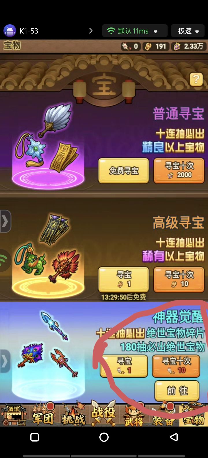 推荐阵容:吕布、左慈、陈宫、袁术、华佗开局篇:过了指引就点左上角猫头鹰~福利~特惠礼包把30个69卷广告看了,然后把每日特惠都买完(每日必买),然后去限时活动把积分达标招募令买了。然后去酒馆抽300抽。可以开启神将降临,神将商店买满68那档的抽了后然后抽阵营的(群雄强势)做完这些绝世无双箱子选吕布、左慈。群雄阵营抽的陈宫,袁术,华佗突破下。 挂机100关开宝物,里面神器降临68买满,拿了神器就