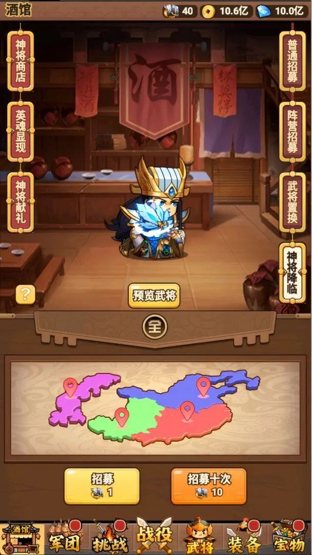 推荐阵容:吕布、左慈、陈宫、袁术、华佗开局篇:过了指引就点左上角猫头鹰~福利~特惠礼包把30个69卷广告看了,然后把每日特惠都买完(每日必买),然后去限时活动把积分达标招募令买了。然后去酒馆抽300抽。可以开启神将降临,神将商店买满68那档的抽了后然后抽阵营的(群雄强势)做完这些绝世无双箱子选吕布、左慈。群雄阵营抽的陈宫,袁术,华佗突破下。 挂机100关开宝物,里面神器降临68买满,拿了神器就