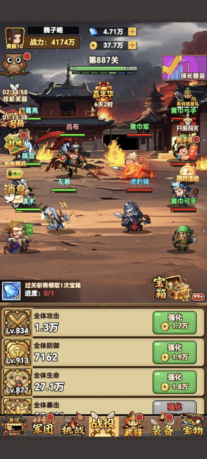 前期要集中资源培养吕布,他负责输出,诸葛左慈来控制,前期把所有经验丹、进阶丹和装备都优先到吕布,能快速提升推图效率。 阵容是吕布、诸葛亮、左慈、孙策、袁术组合,孙策吕布在前排扛伤,诸葛亮和左慈在后排负责控制和续航。 每日必买“每日礼包1代金券”,快速积累抽卡资源升吕布的星级;用剩余代金券购买3代金券的月礼包获取经验和金币。