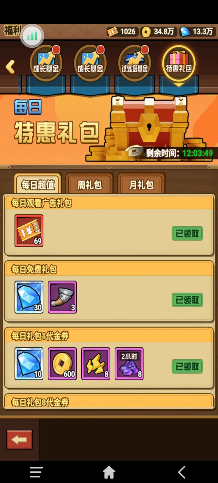 1. 特惠礼包购买策略- 每日特惠:建议看完每日广告后,把每日特惠礼包全部清空,这属于性价比极高的投入。当然,这也看个人的资源储备情况。(图一)- 每周特惠:同样建议清空,但其中标价3块和25块的礼包性价比极低,不值得购买。(图二)- 每月特惠:建议清空,但标价3块、6块、12块的礼包可以直接跳过,避免浪费资源,(图三)2. 普通角色养成细节对于非绝世的普通角色,养成前可以先