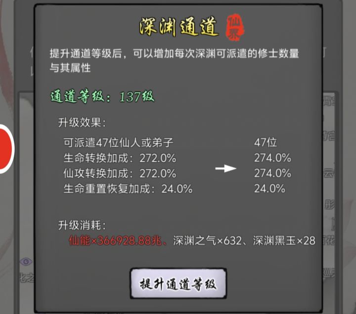 群里偷的图深渊通道升级最高140级116级能耗3.33万兆140级能耗46万兆6圣天皇能产3300兆没日没夜挖了1400+天煤才拉满保守估计目前游戏寿命十年以上,还是每天肝几小时的那种
