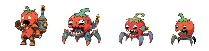 探险家们好呀~最近听说有些等不及的探险家想知道我们的宠物都长什么样子,所以洛素偷偷去美术小哥那边偷了几张图,咱们一起来品品。「紫雾旅团」茄子特工组作为《神宠降临》官方茄子,首当其冲的便是我们茄子大家族。紫色风暴来袭!从左往右分别是茄子系宠物不一样的形态(左边的最强。不管哪个形态,都背着鼓鼓的背包,里面一定是有什么好东西。「丰收守卫」南瓜骑士团圆滚滚的南瓜脑袋配上各具特色的装扮,还是没有我可