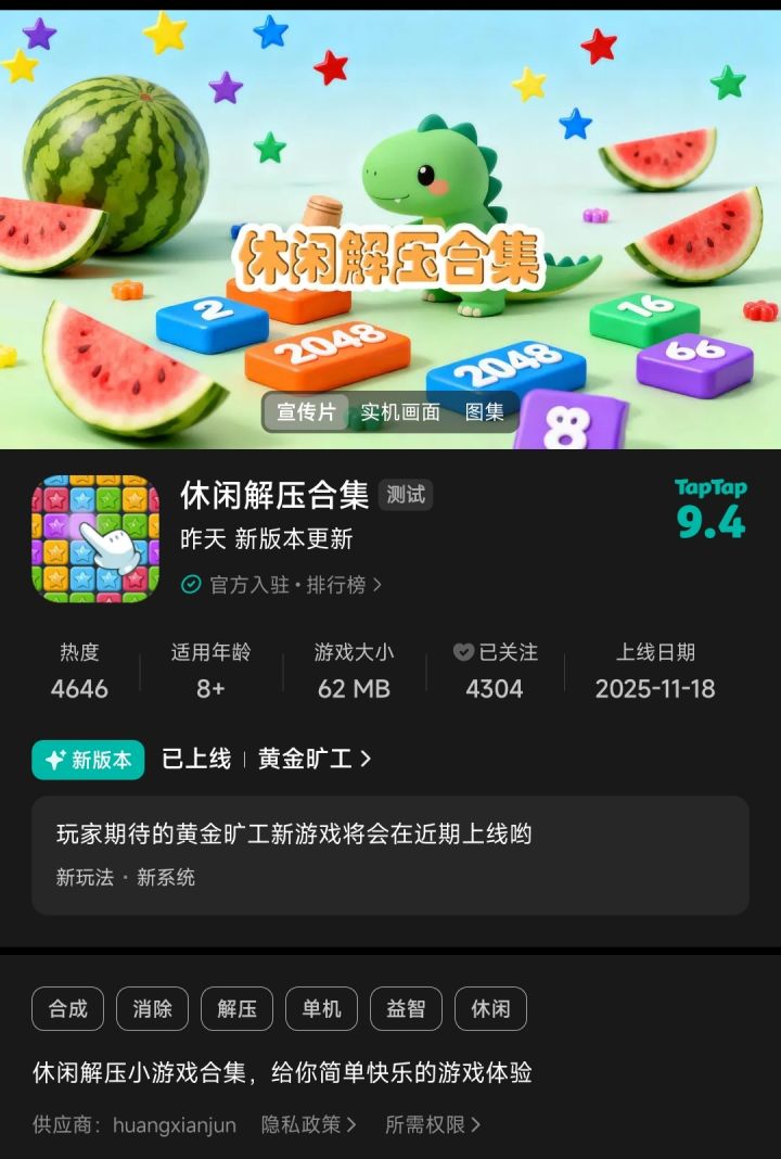 游戏画面好看,玩法多样,基本没什么广告,最喜欢消灭星星和小恐龙,休闲又解压,是个不错的合集,没事玩两把,玩不够,多更新啊,许愿抓大鹅和打螺丝😜