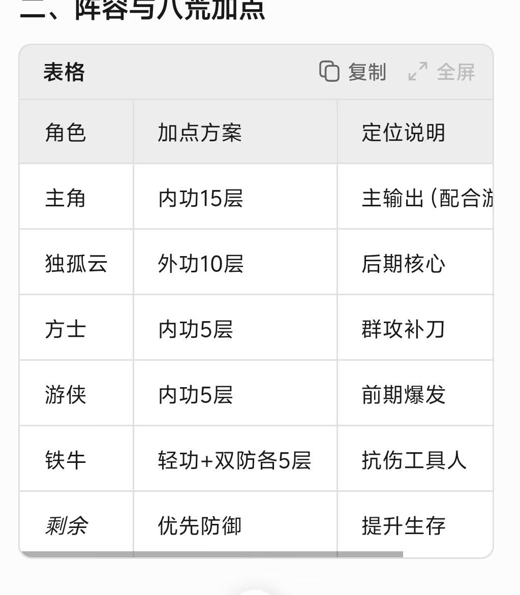 0氪图一攻略 开局选项全选一 图一阵容:主角,独孤云,boss铁牛,刷怪方士,游侠,角色都需要练, 八荒加点主角内功15层(前期主要靠主角和游侠使用游侠技能打伤害) 独孤云外功10层(后期发育) 方士内功5层 游侠内功5层 铁牛轻功和双防5层,看情况 剩余点数根据自己情况来加,推荐防御 1 开局刷免费三连抽龙血(在活动里面可以免费领取三次抽奖,抽到要使用才可以兑换独孤云),没刷到